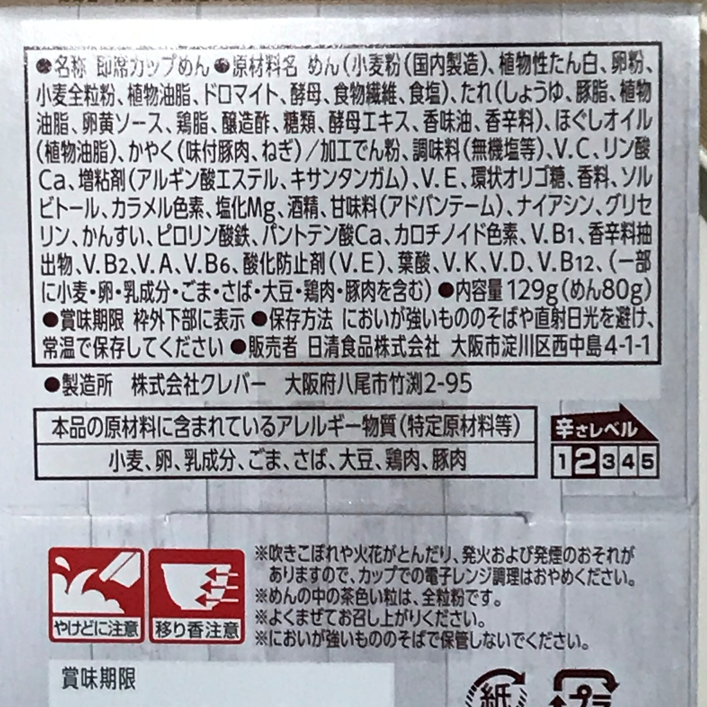 栄養素についてもしっかり書かれています(カップ麺はもちろん、普通の食品でも見たことのない栄養の数々)。