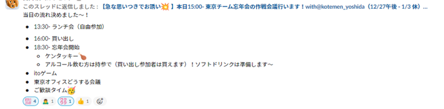 奇跡的に福岡メンバーと同じタイミングで、粛々と(仕事の合間に)忘年会準備が始まっておりました。
