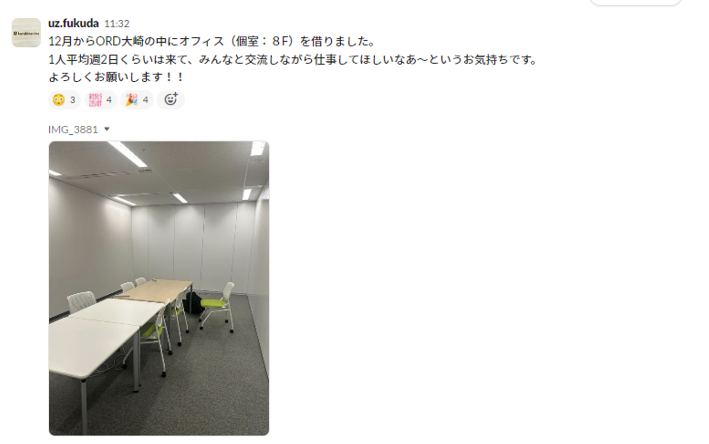 起業したわけでもないが、自分たちでアイディアを出しながらオフィスを創っていくこの感じは中々味わえない体験ではなかろうか・・としみじみ。
