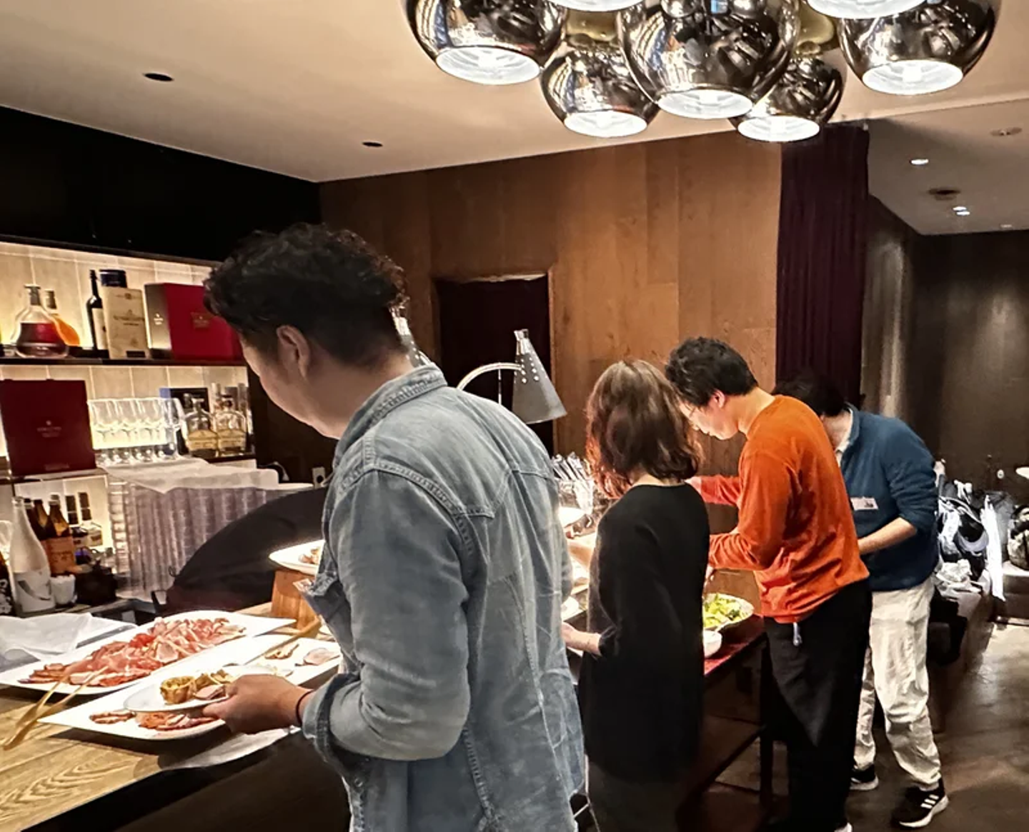 僭越ながら、人生初の乾杯の挨拶を担当させていただいた私。こういう時、どこを見て話せばよいのか分からないなと思いながら、後ろの壁を見つめて挨拶しました。