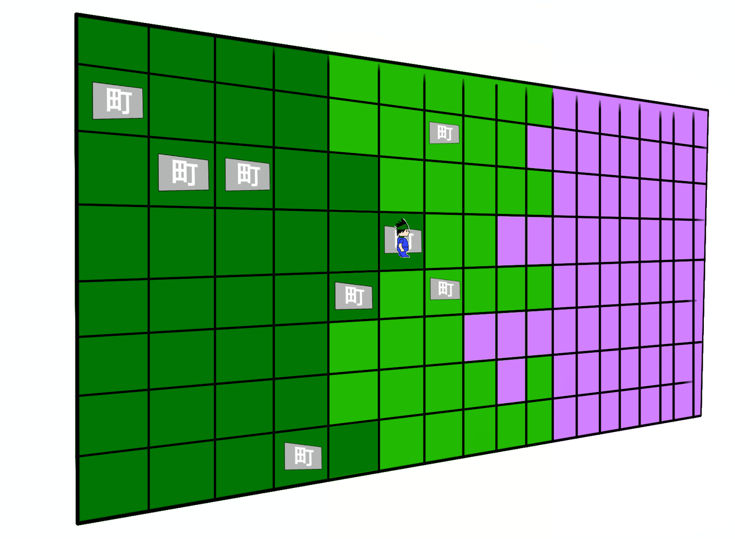 町のある区域(1区域に最大で1つ)に侵入し、町の中に入ると