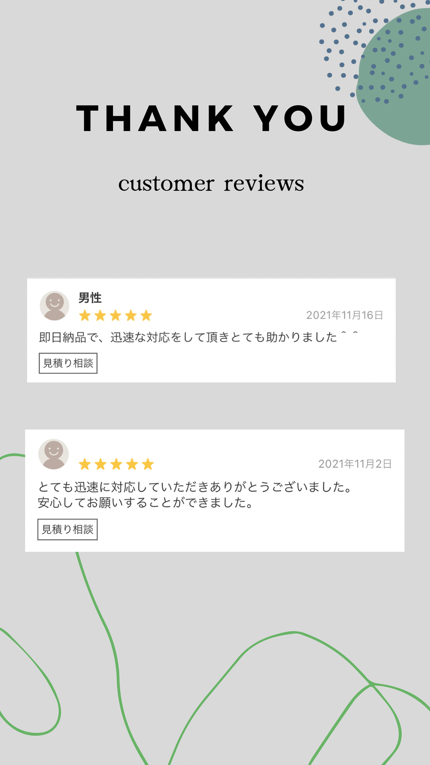 そして納品後にいただいた口コミには、「とても迅速に対応していただきありがとうございました。安心してお願いすることができました。」と書かれていました。