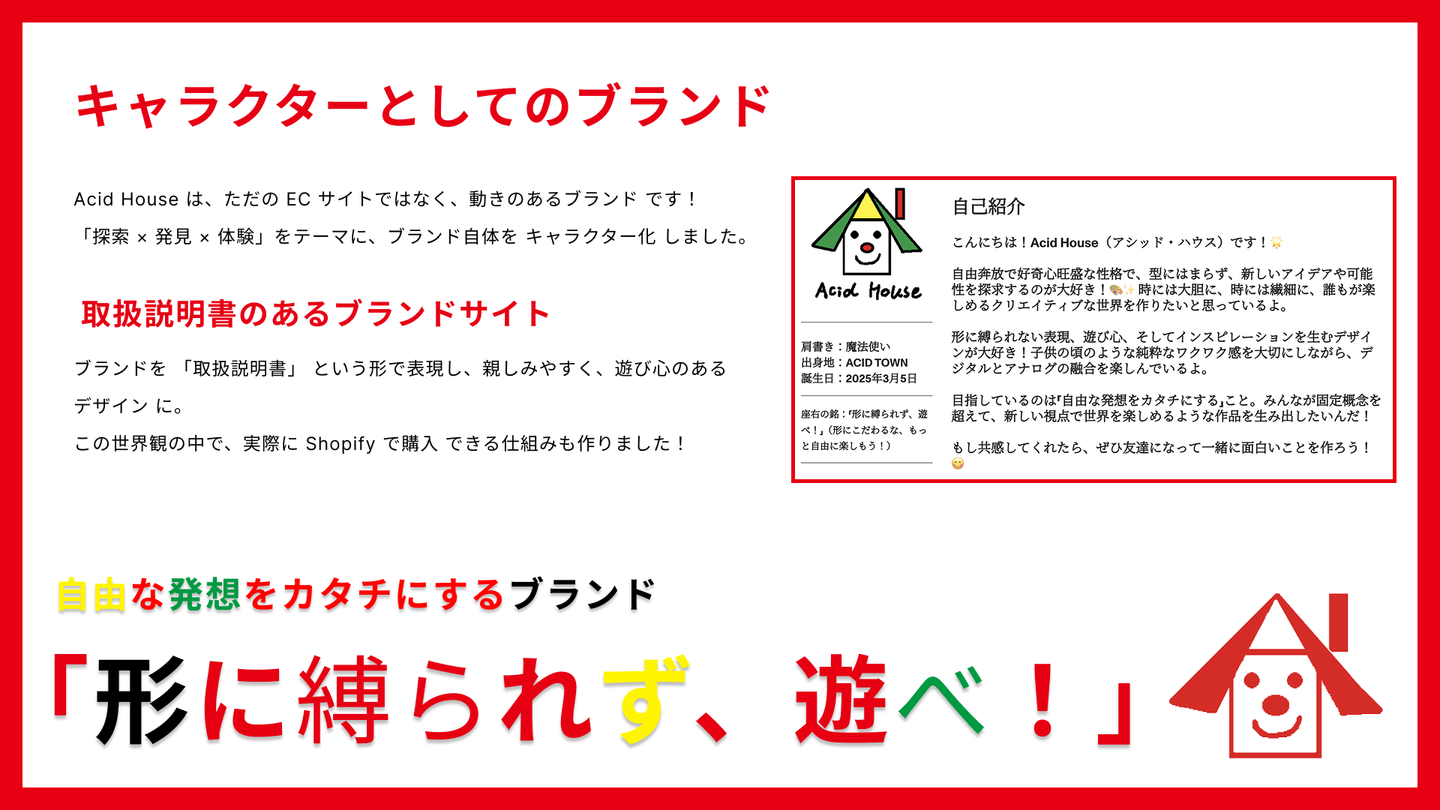 こうすることで、ACID HOUSE が「生活の一部」になっているイメージ を、より具体的に伝えられるようになりました!