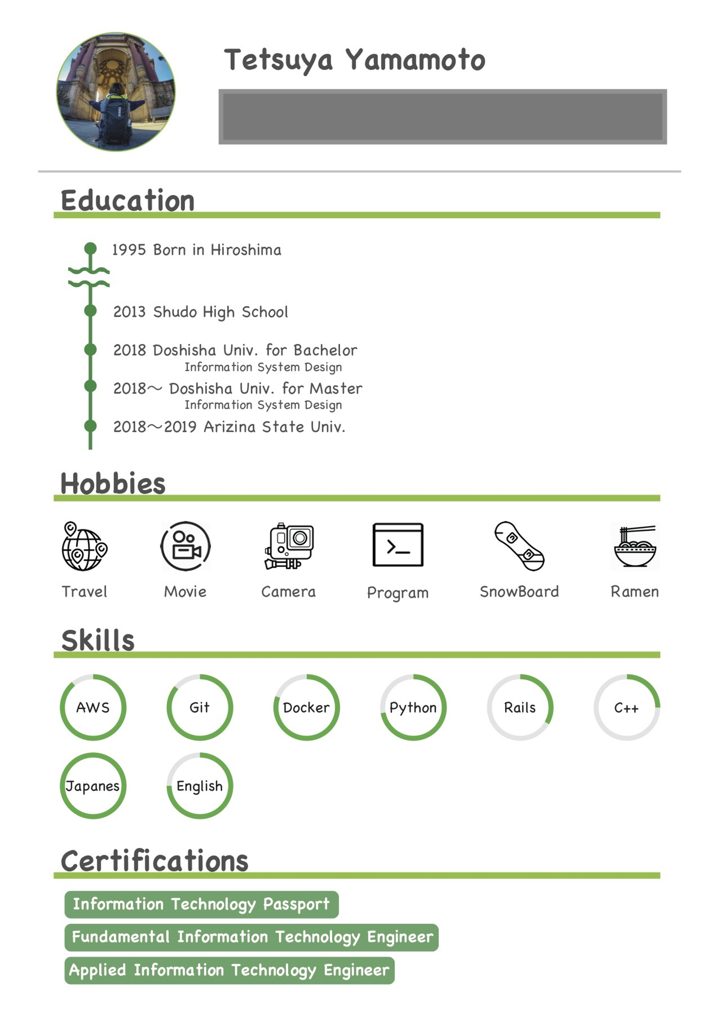 Resume 山本 哲也 株式会社AbemaTV on 2019/02/14 外人のレジュメをぱくってみた。笑 Resume 山本 哲也 AWS internship resume portfolio シェア