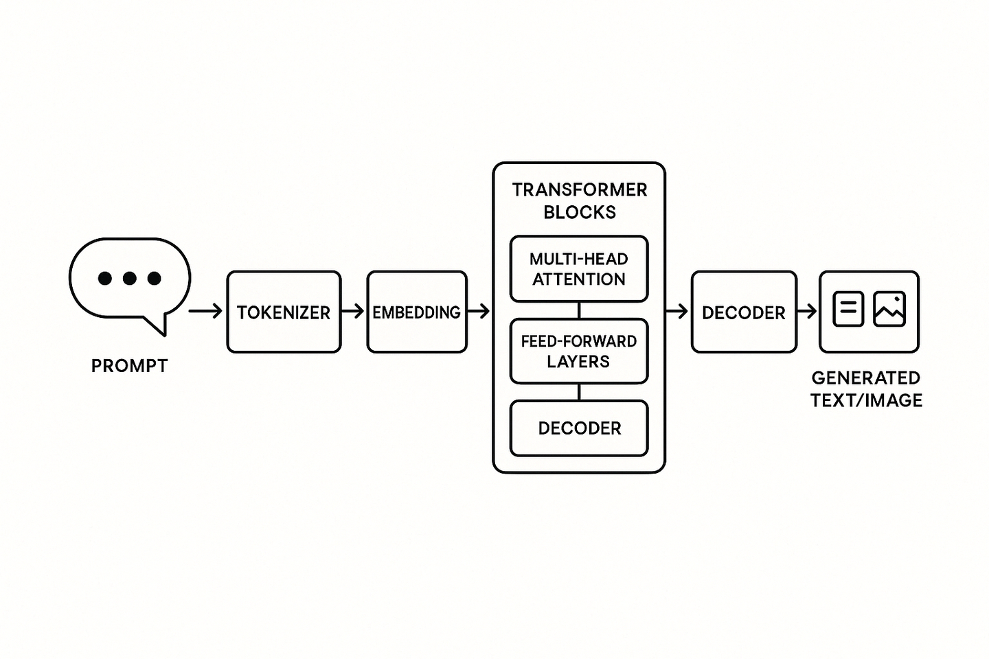 その仕組みは、簡単に言うと、世の中の膨大なデータ(文章とか画像とか)を食べさせて、パターンを学習させるんです。で、そのパターンを基に新しいものを生み出します。自分の理解では、統計的な確率モデルみたいな感じで次に来そうな単語や要素を予測しているんだと思います。