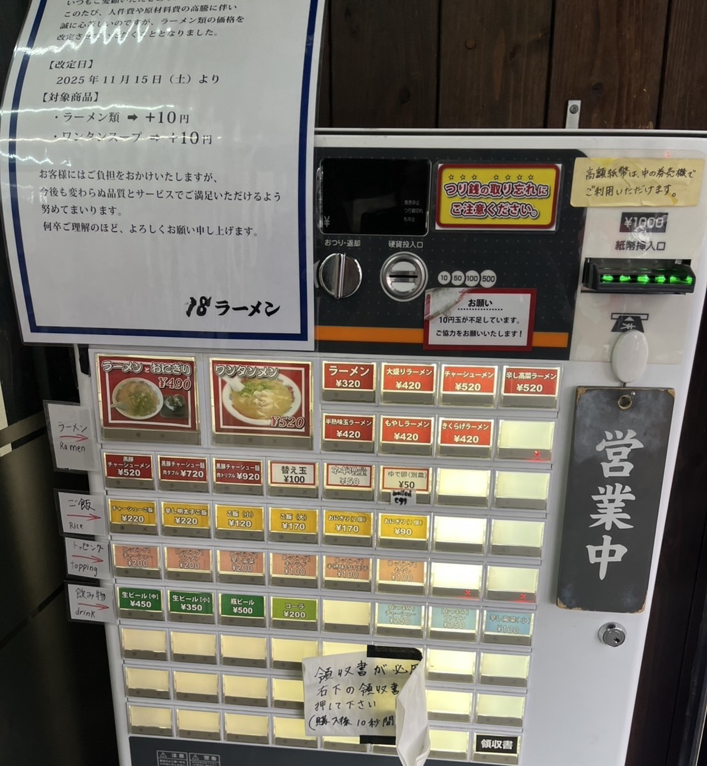 デブ活日記✨Vol.45 平塚 優 人材紹介事業部 on 2025/11/23 福岡で2番目?に安いラーメン!320円!11/15から10円値上げするそうなので330円になります!18(いっぱち)ラーメンさんです✨安定の豚骨ラーメン!正直味めちゃくちゃ薄いです😇テーブルにある調味料も胡椒だけなので厳しかった、、、正直カップラーメンの方が美味しいですね😢まあラーメンは好みですからね!どんどん色んな店発掘しよう💪 デブ活日記✨Vol.45 平塚 優 中途採用 新卒採用 ペイストレージ ソクワーク まちゃりん 4 いいね! シェア 4 いいね!