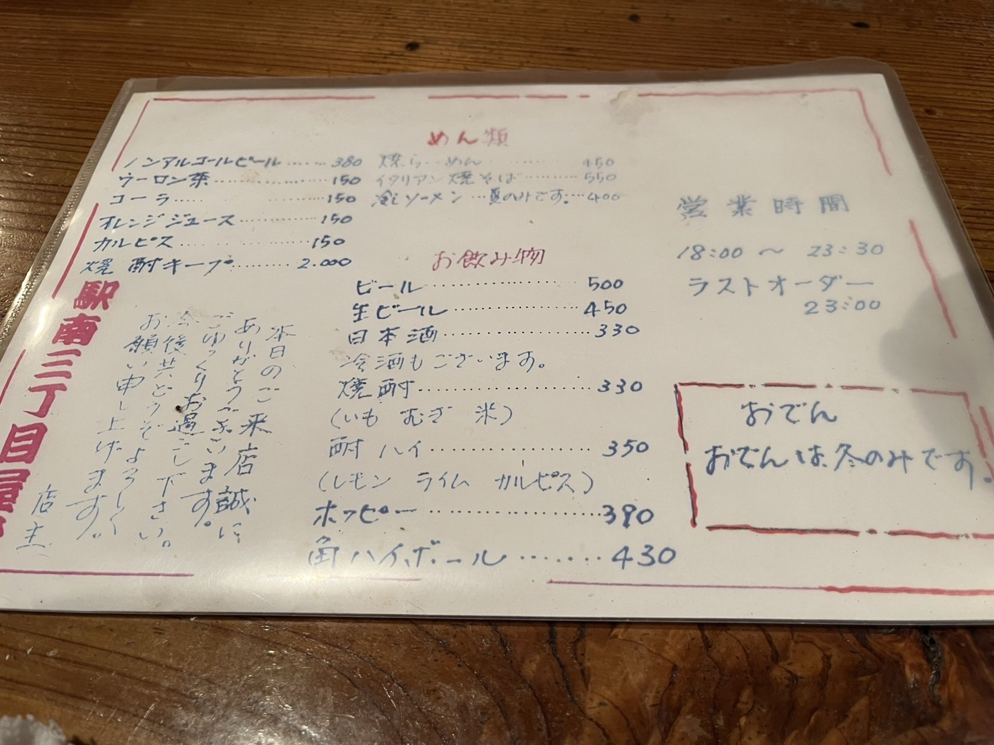 今日はいつも一緒に飲みに行ってるおじさんに振られたので1人飲みで自宅近くの駅南三丁目屋台さんへ行ってきました🚶