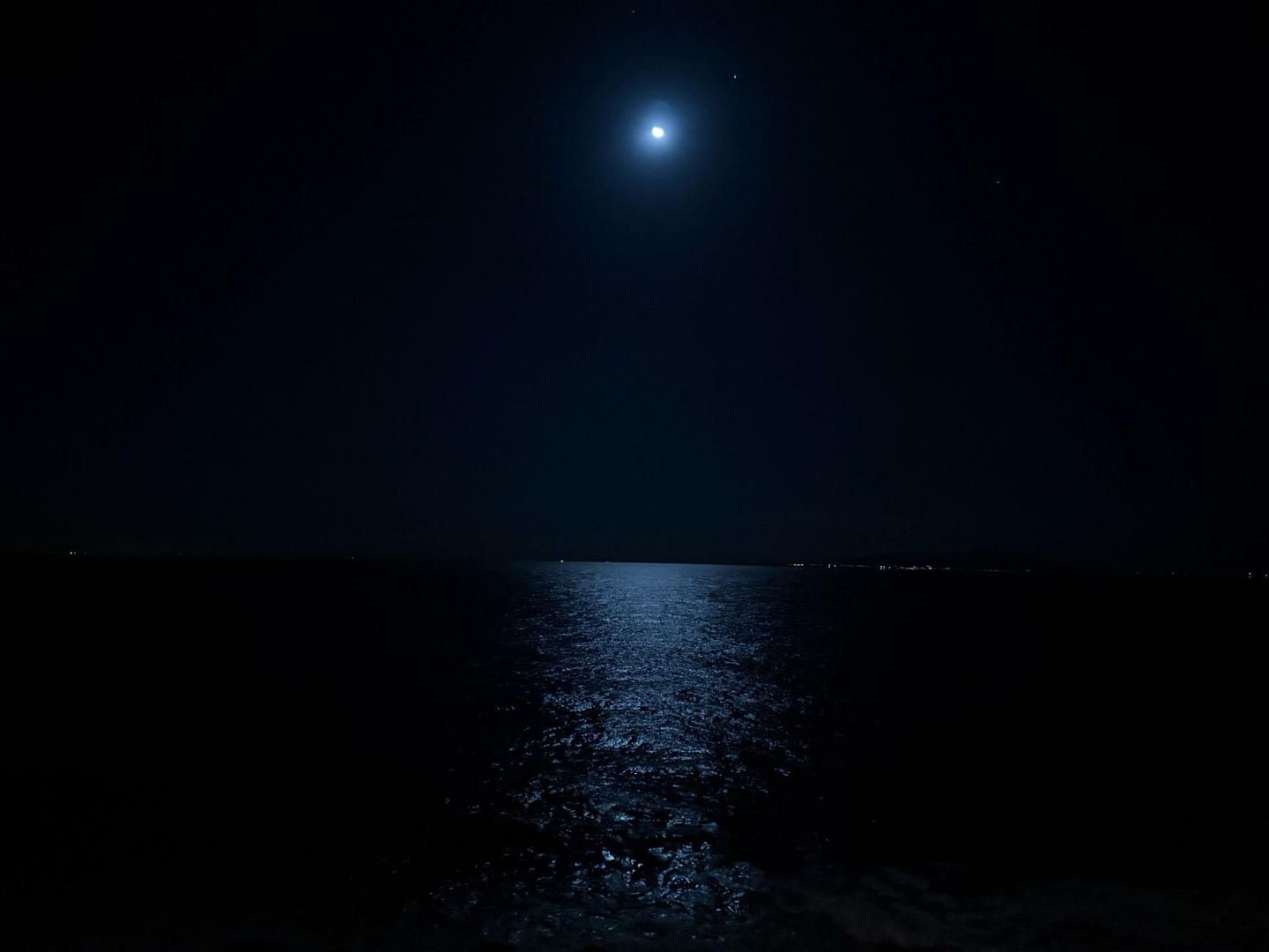 部屋の窓から本物のムーンロード(海の上に月光が道のように伸びる現象)を見るという、
