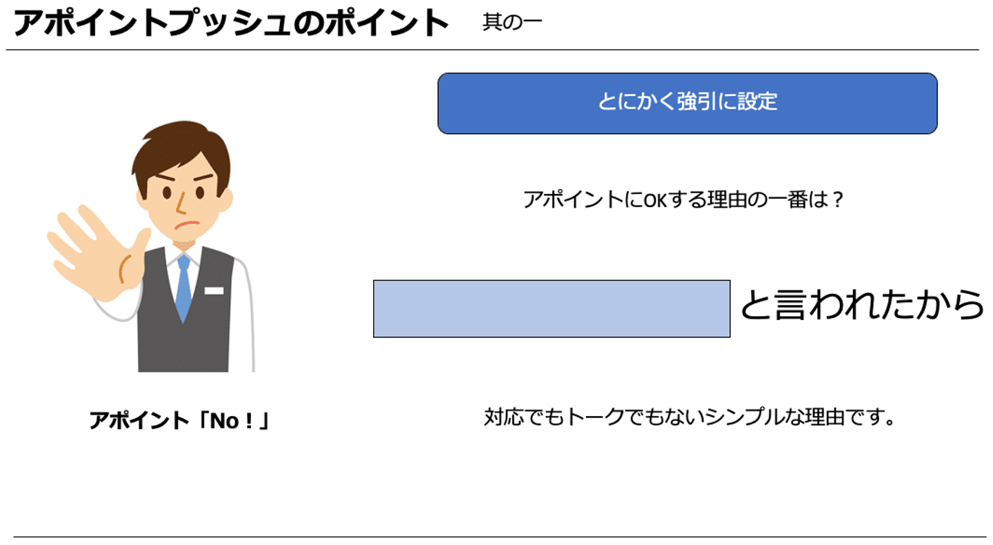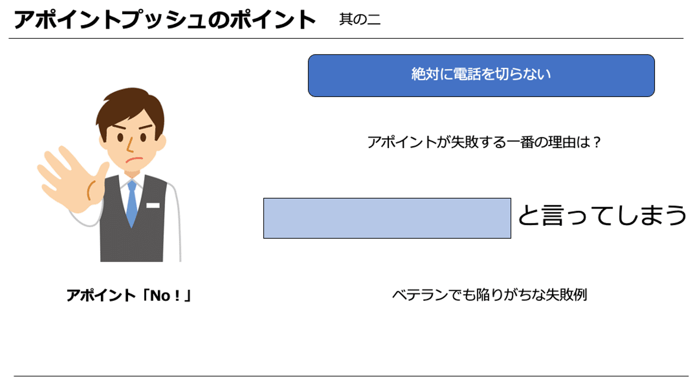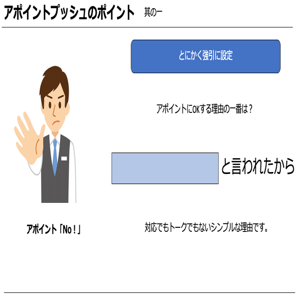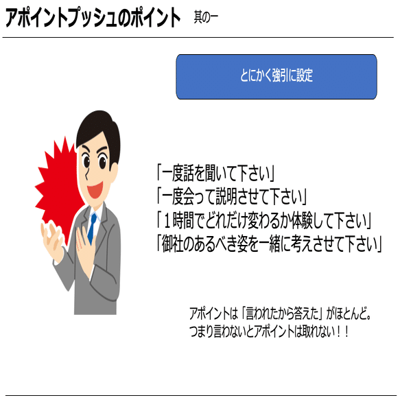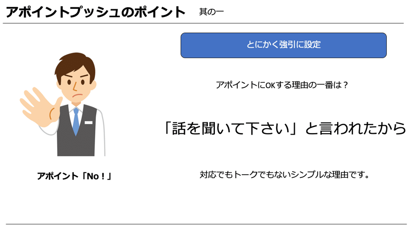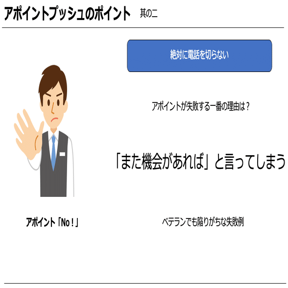 「アポイントを下さい」ということを忘れないということを認識いただけたら嬉しいです。