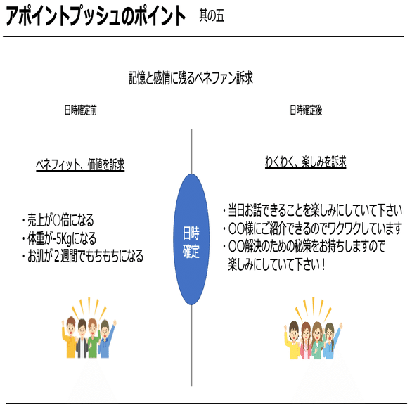 お客様の衝動を引き出し、アポイントをお客様に希望していただく。