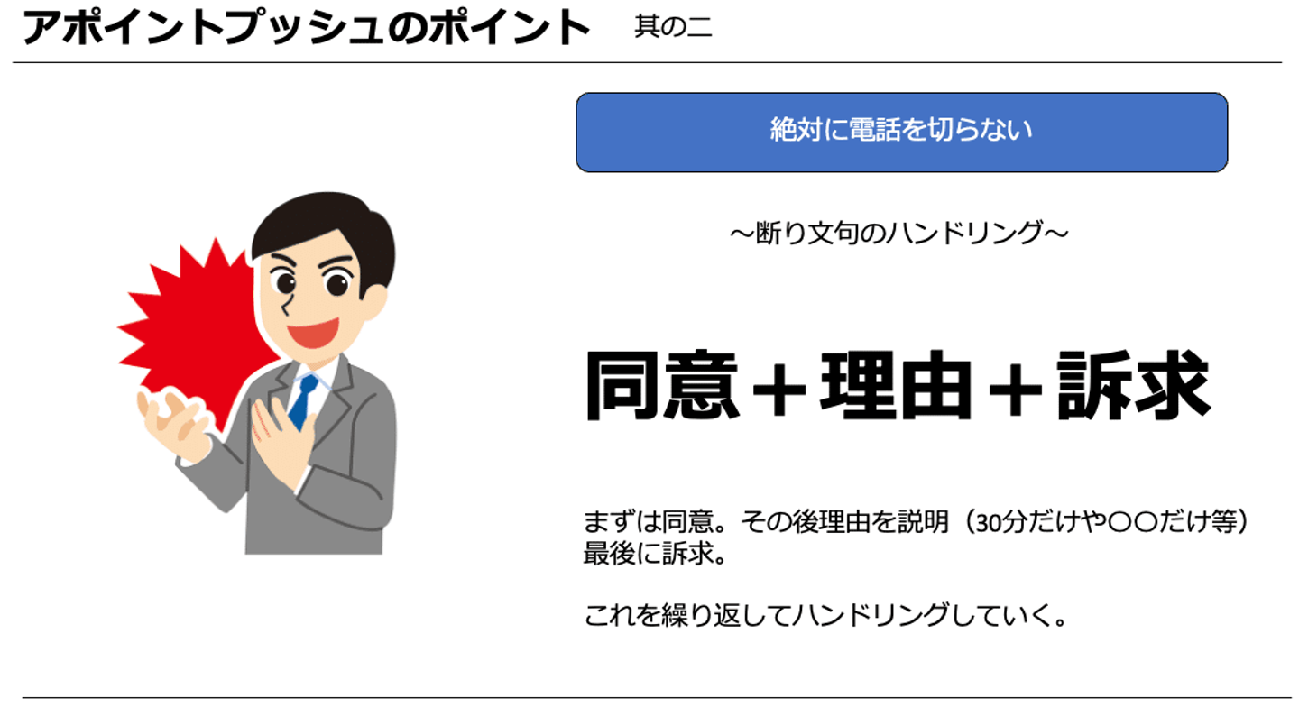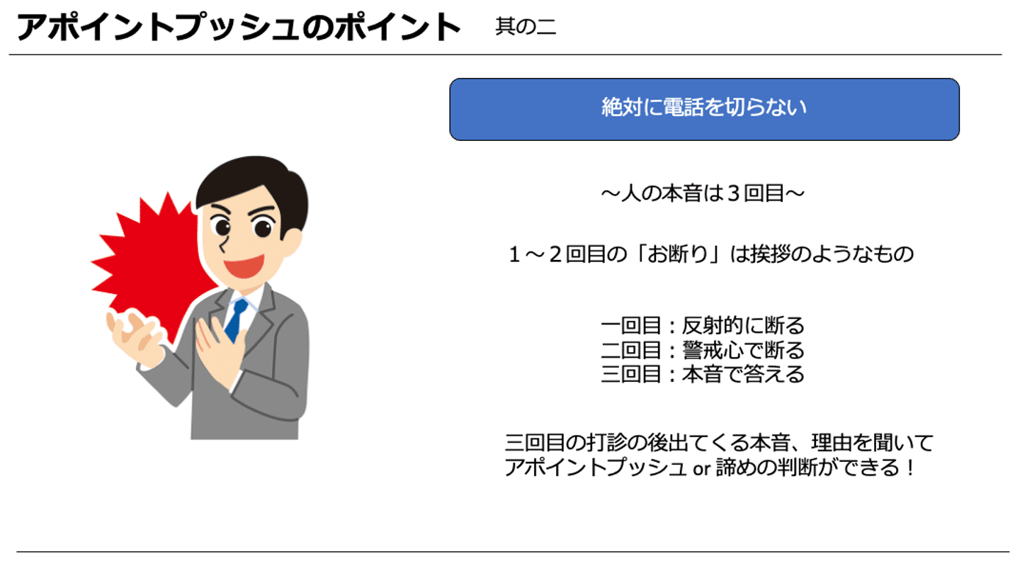これはただ粘って、切らないでしつこくアポを取得するという意味ではありません。