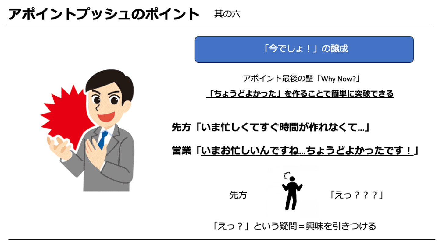 アポイントにもWhy Nowを擬似的に作っていくイメージです。
