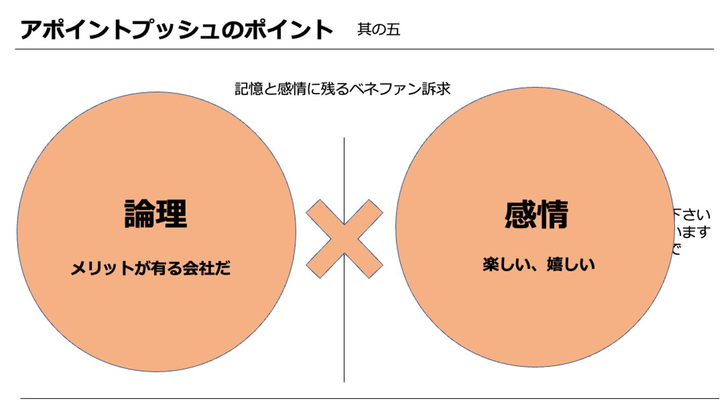 論理と感情によって「残る、刺さる、影響を与える」アポイントを取得することが出来ます。