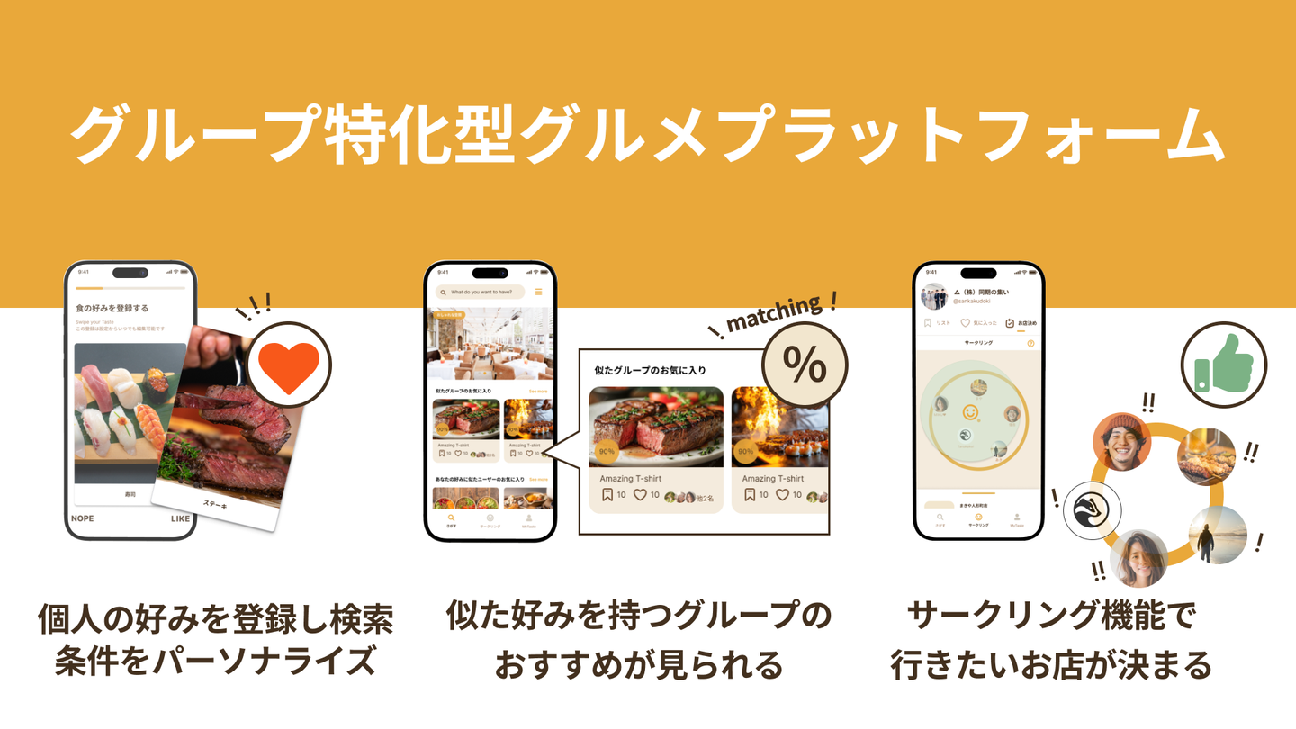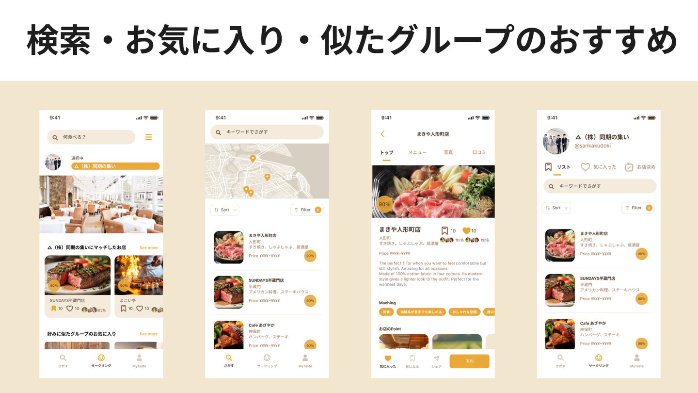⭐️多様な好みに対応できる、”グループ特化”のグルメプラットフォームを制作しました