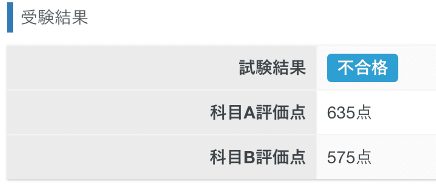 結果、科目Bがあと10点だけ届かず「不合格」。