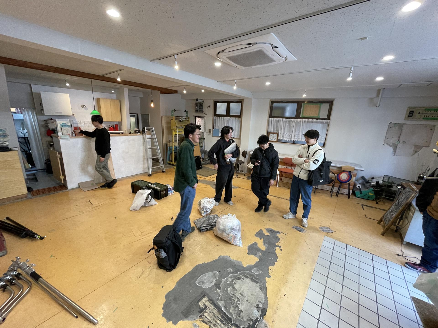 中野駅周辺商店街にあるレンタルスペースを学生たちで折半して借り、それぞれ建築模型、や制作家具、制作衣服など各々自分が制作してきた課題を展示しようとしている中、1人だけカラーコーンを展示しようとしているので少し浮いている感がありました。