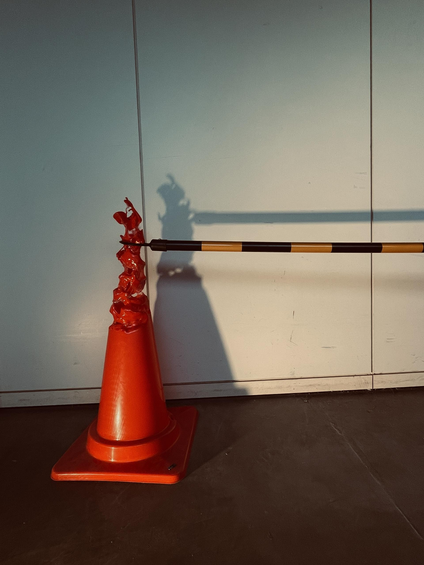 友人に誕生日プレゼントでカラーコーンをもらいました。それを何か作品として使えないか考えていっそのこと燃やしてしまおうと思いつきました。