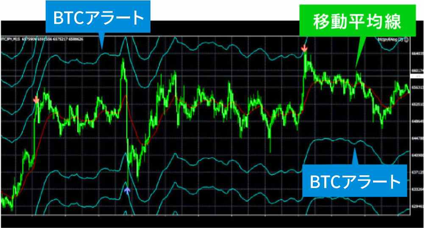 そして注目すべきは青色のBTCアラートと呼ばれる線になります。