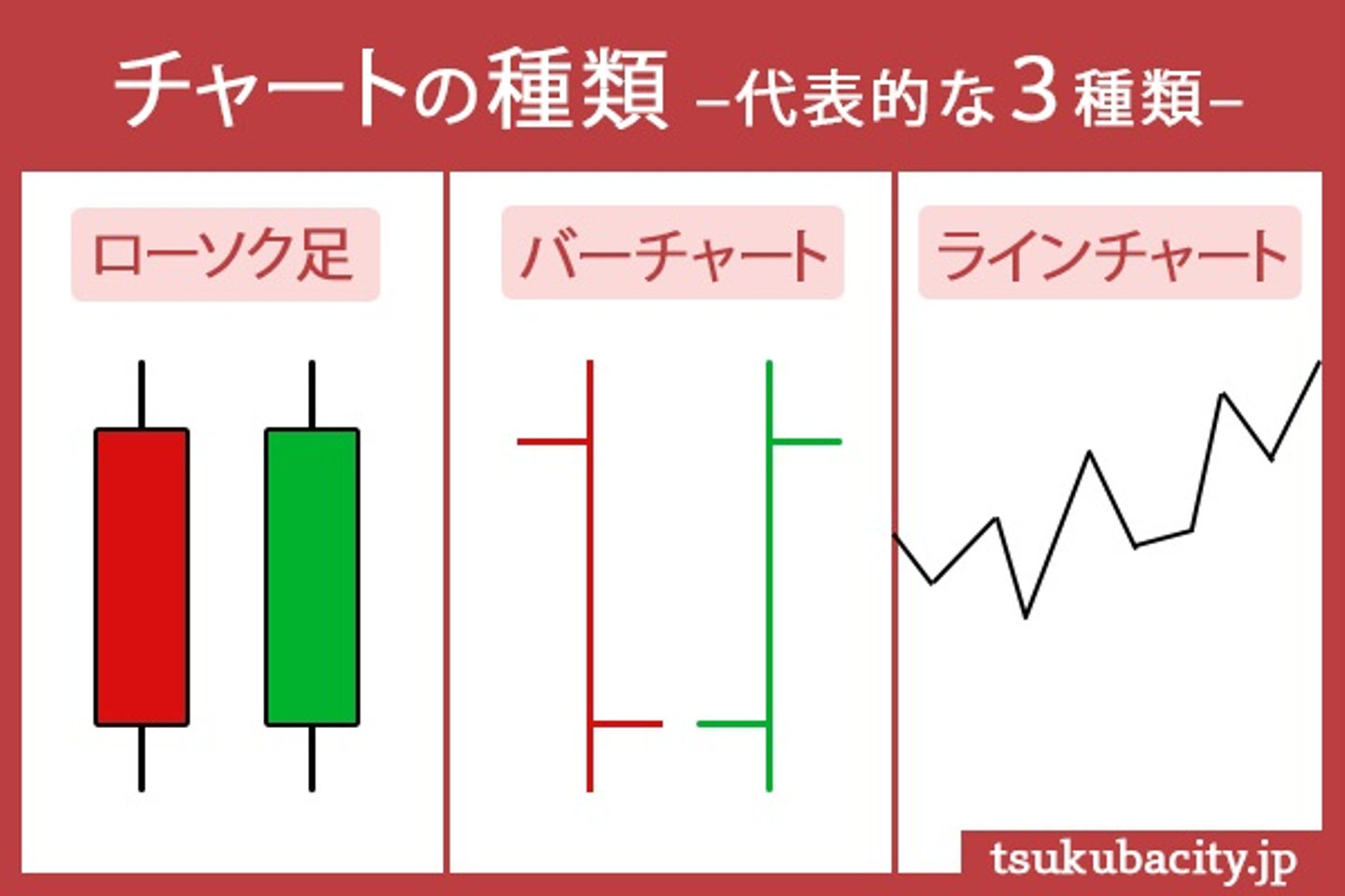 中でも、投資でよく使われるチャートは、左のローソク足と呼ばれる種類であり、この表をみて市場の値動きを予測するのが、投資家の稼ぎ方です。