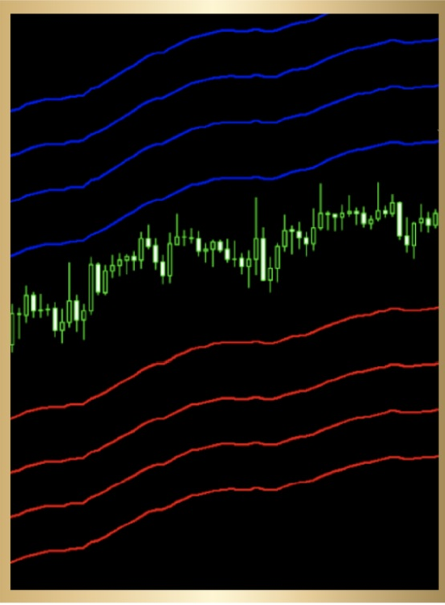 価格帯の上に4つの青線、下に4つの赤線が引いてあります。