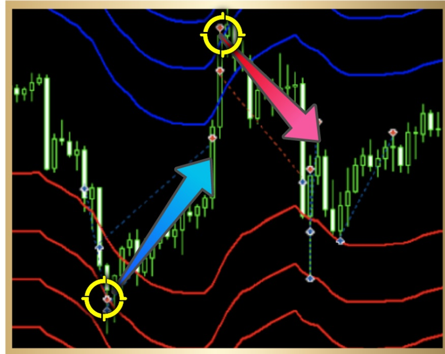 より具体的に言えば、市場に発生する値動きのターニングポイントを予測し、取引タイミングを教えてくれるというシステムになります。