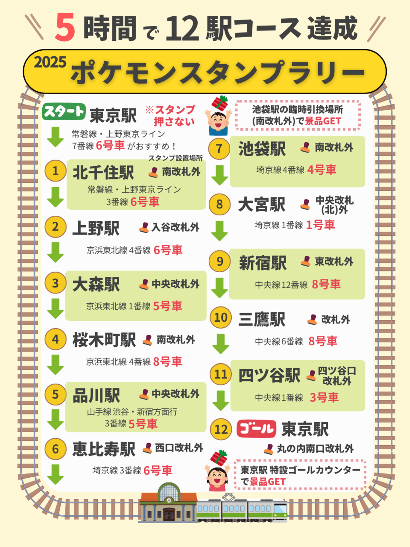 結論! 以下の記事内にある回り方なら、5時間でポケモンスタンプラリー2025「12駅コース」を達成できます。