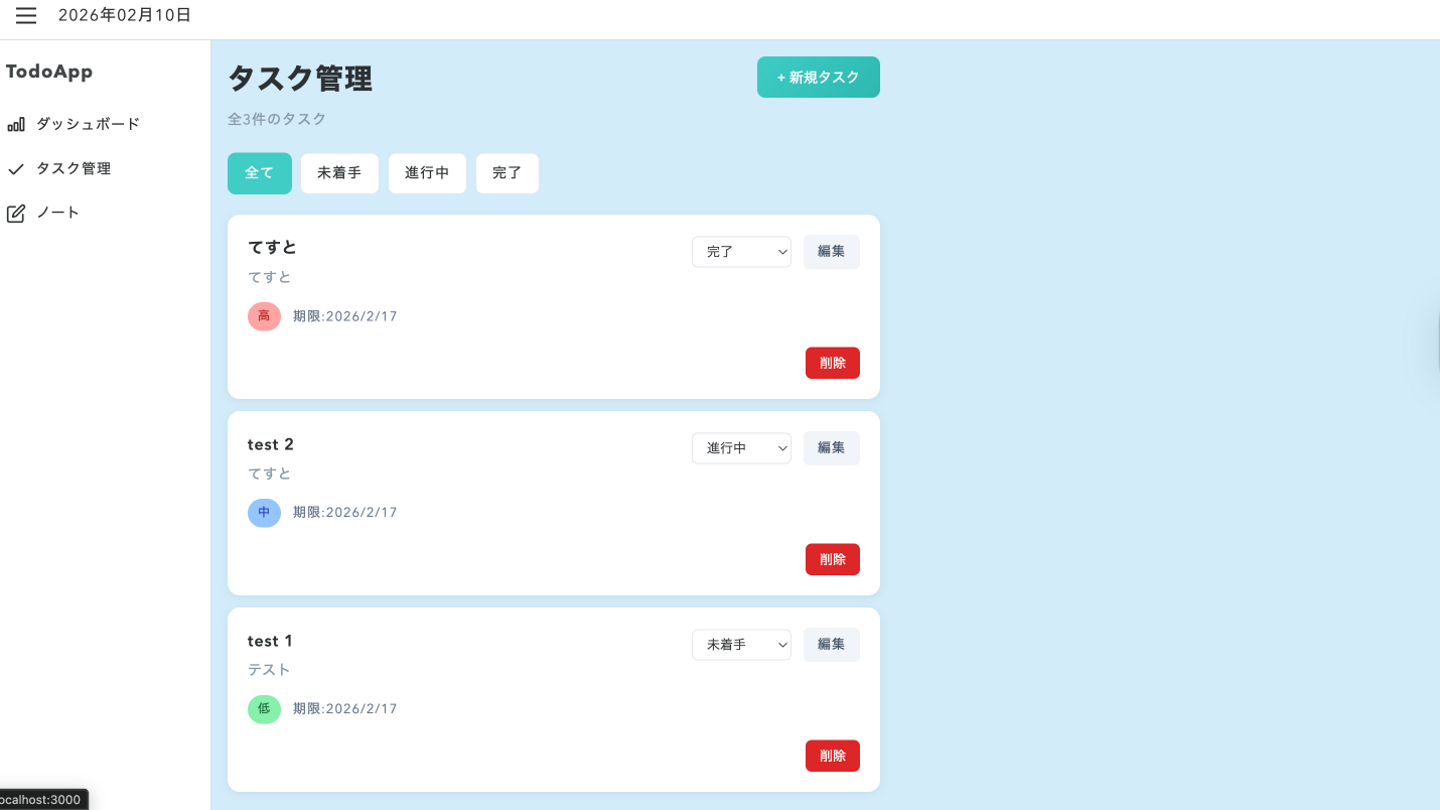 この画面ではタスクの追加と削除、編集ができるようになっています。