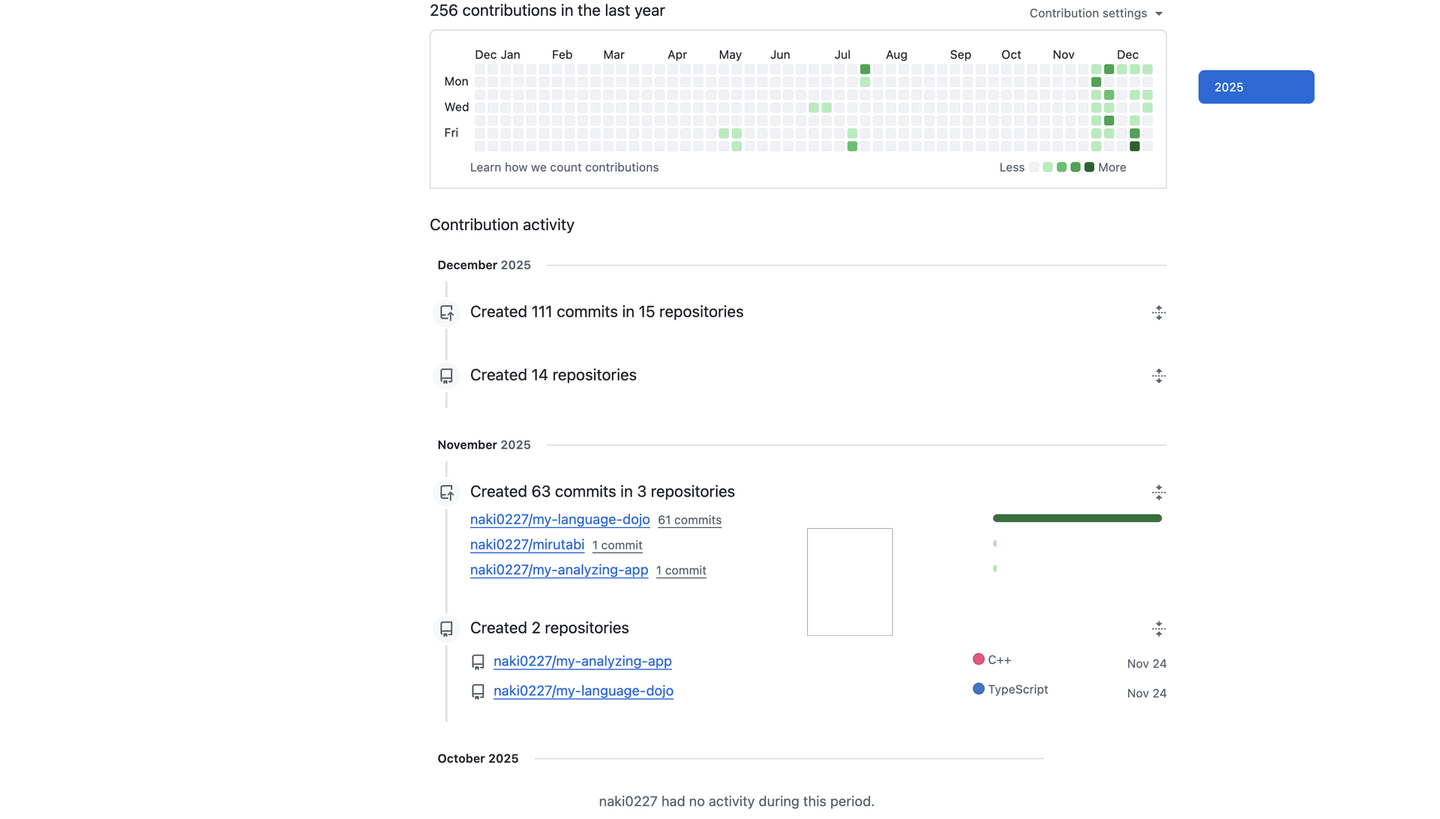10月まで0だった僕のGitHubが、なぜ1.5ヶ月で緑一色になったのか。その裏側にある葛藤と、ある出会いについて書きました。