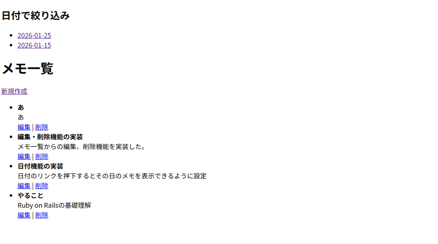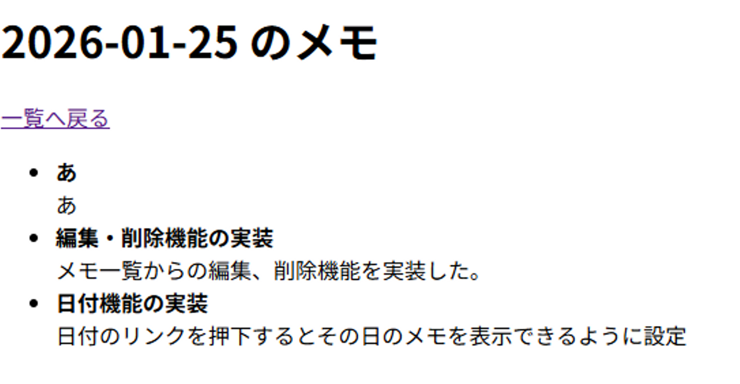 実際にWeb上で動作するメモ一覧機能の作成に取り組みました。