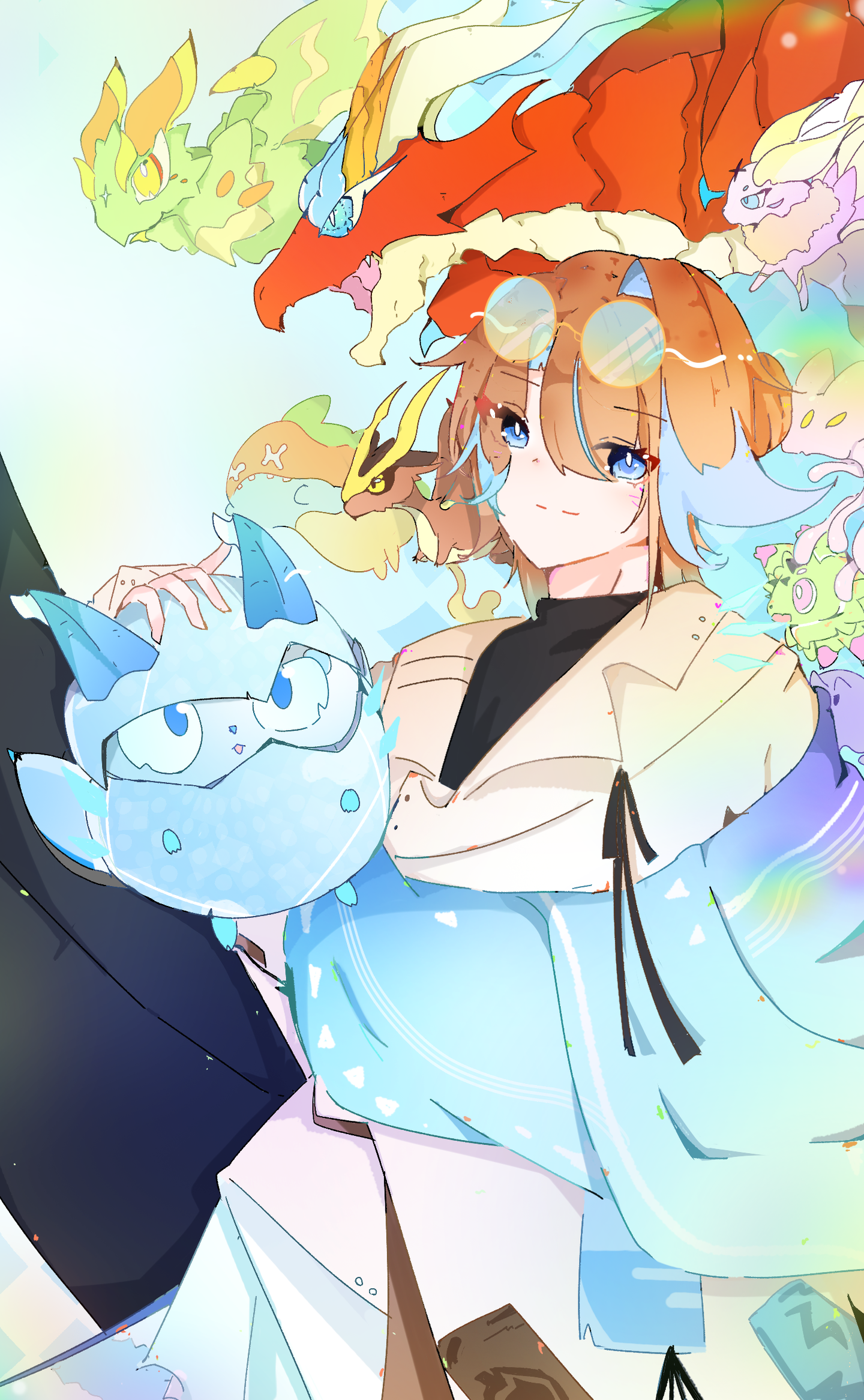 『ストーリー中盤以降の主人公』をイメージし、モンスターの多様性をアピールするため、下段にロゴ配置をすることを想定しイラストを制作。