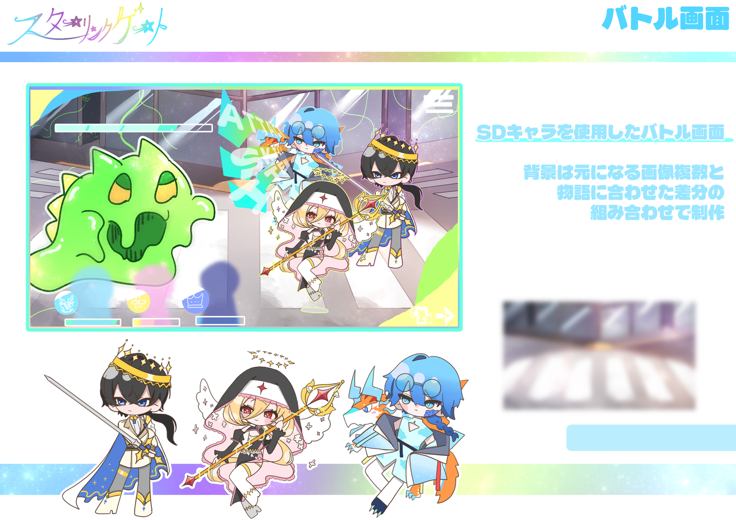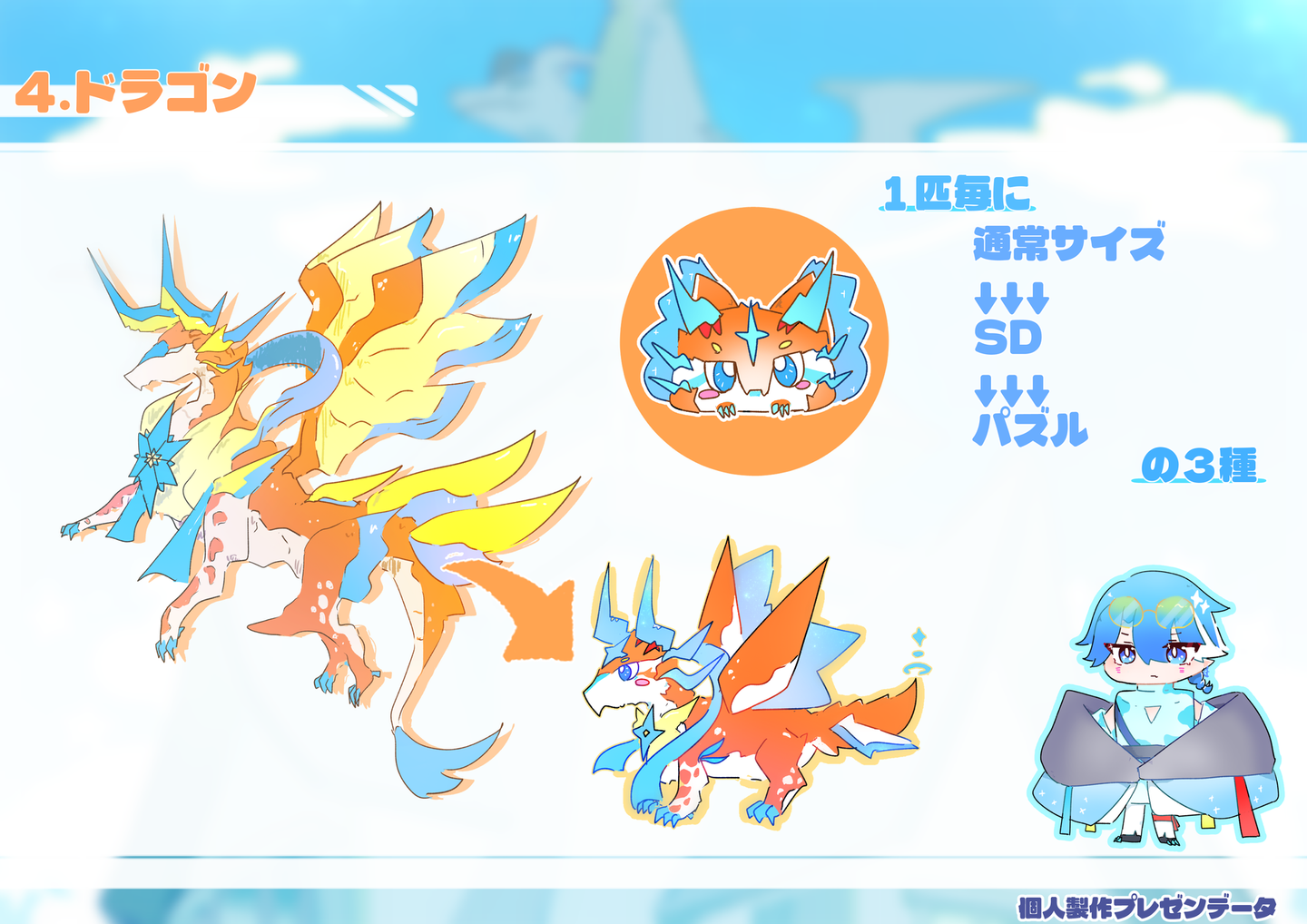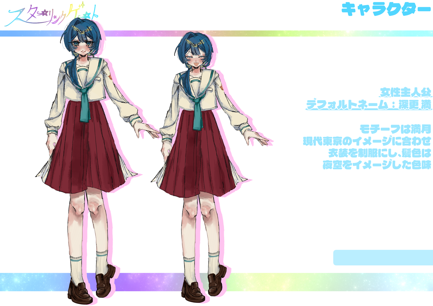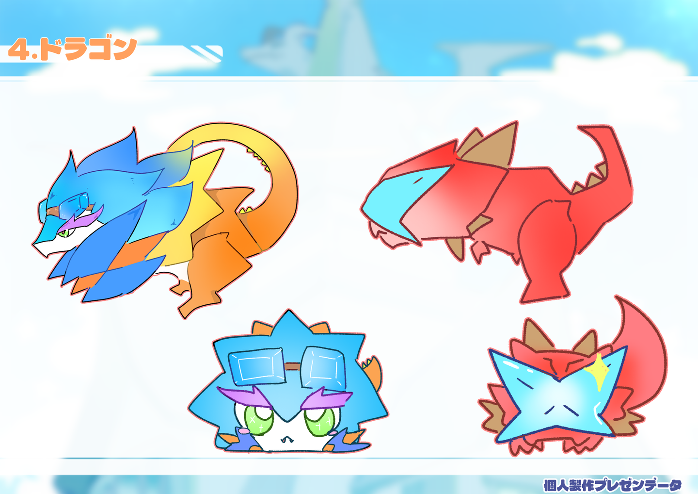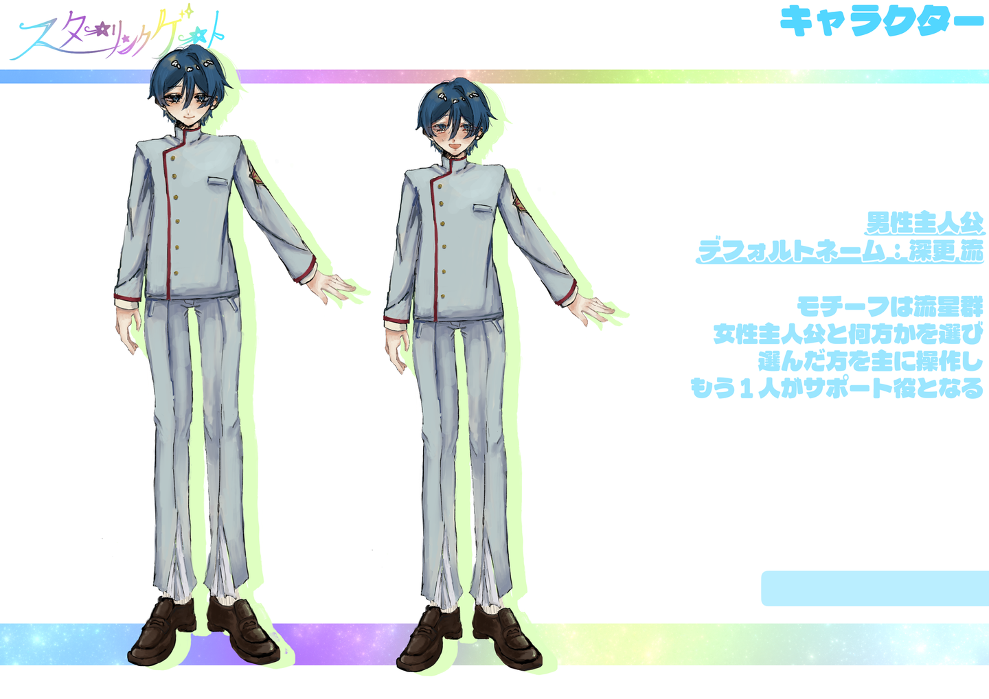【課題製作】 架空ゲーム発表 外間 仁 学生 on 2026/02/18 2025年7月頃に学校課題で製作した架空ゲームの発表用資料です。【グループ制作】・1部キャラクターデザイン・立ち絵製作・ゲーム画面イメージ製作・ロゴ色彩【個人製作】 【課題製作】 架空ゲーム発表 外間 仁 イラスト制作 シェア