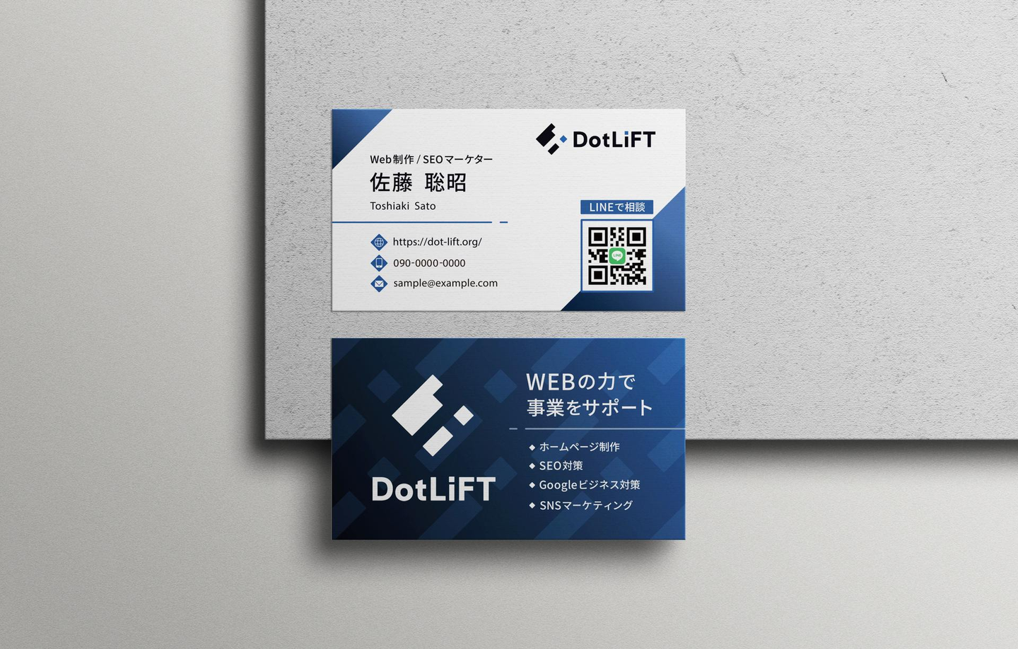 Web制作やSEOマーケティング事業を行っているDOT LIFT様のロゴおよび名刺をデザインいたしました。