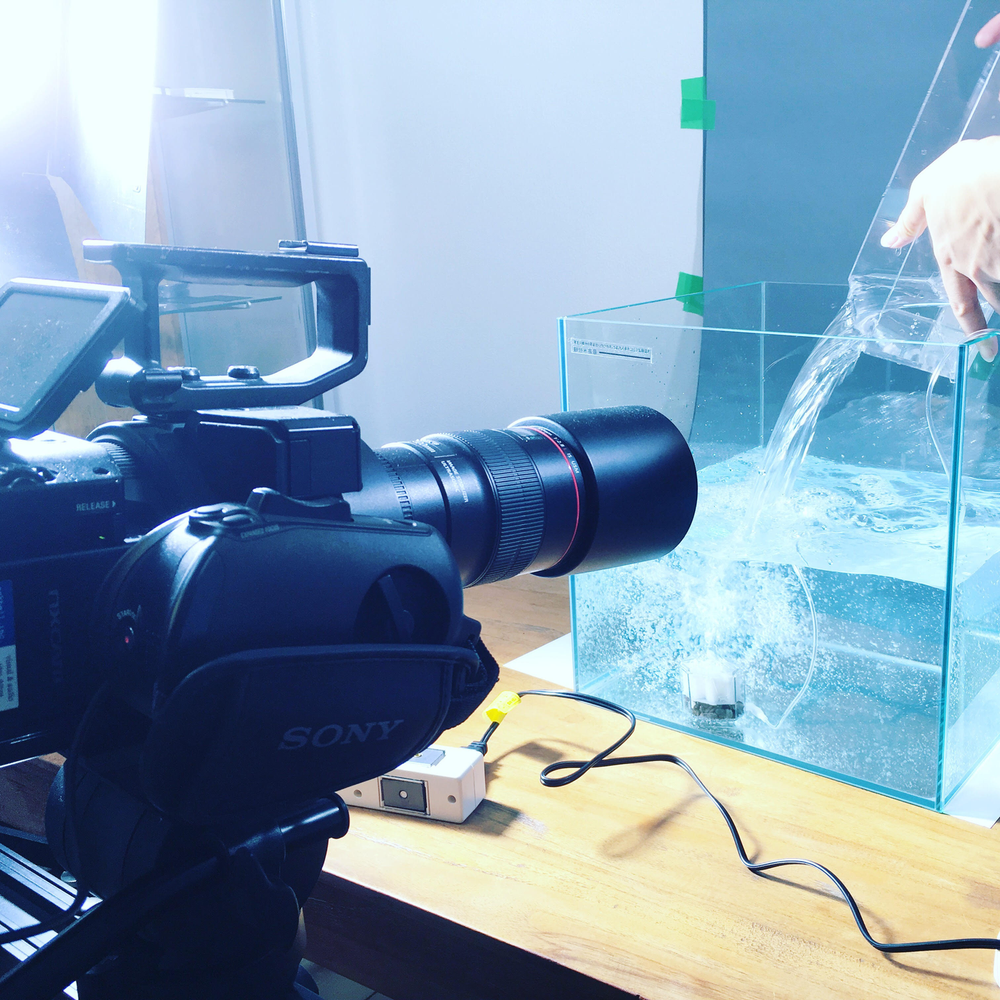 本番撮影に備えて、水を使ったテスト撮影を行ったり、