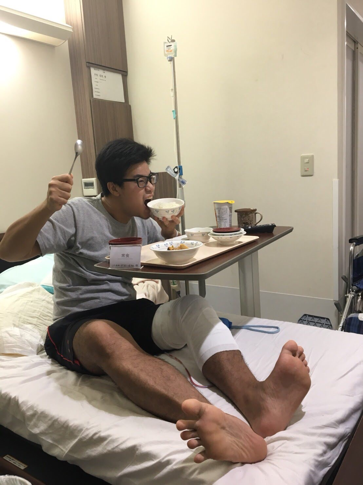 翌年大学4年になり就活をしている中、ラグビーで膝の前十字靭帯断裂、半月板損傷をしました。手術、入院を経て10日ほどで退院するも手術箇所が感染症にかかりさらに1ヶ月半入院しました。日本で感染症を発症するのは宝くじに当たるくらい極めて珍しく、膝界で権威のある先生にも驚かれました。とんだ貧乏くじを引いてしまったものです。