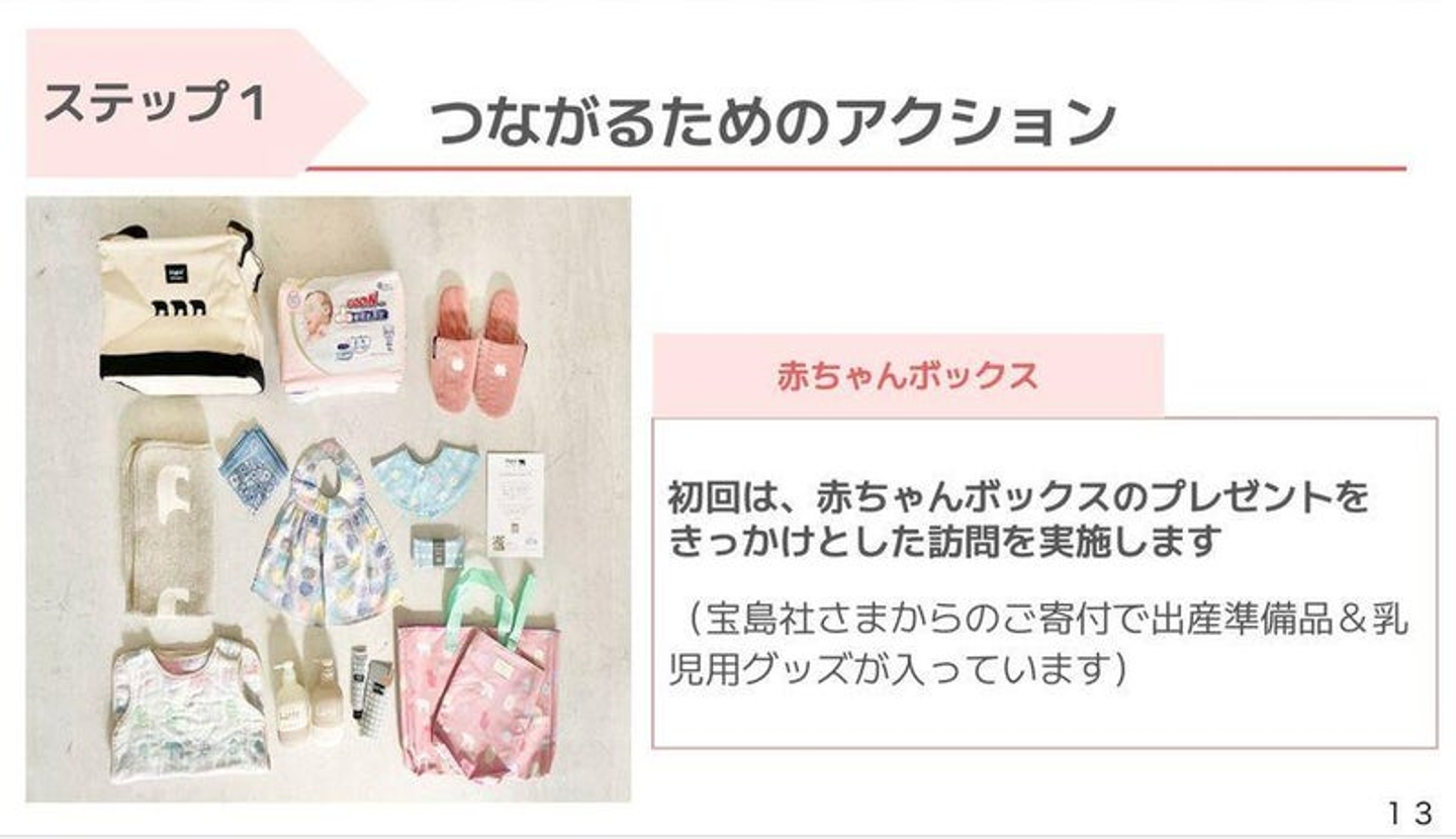 また、家の中に入って赤ちゃんと触れ合いながら話せるので、アウトリーチが深くできる。通常の宅食だと玄関前で受け渡すので、話し込むことはしづらいが、赤ちゃん宅食の場合、あっという間に1時間話すことができた。