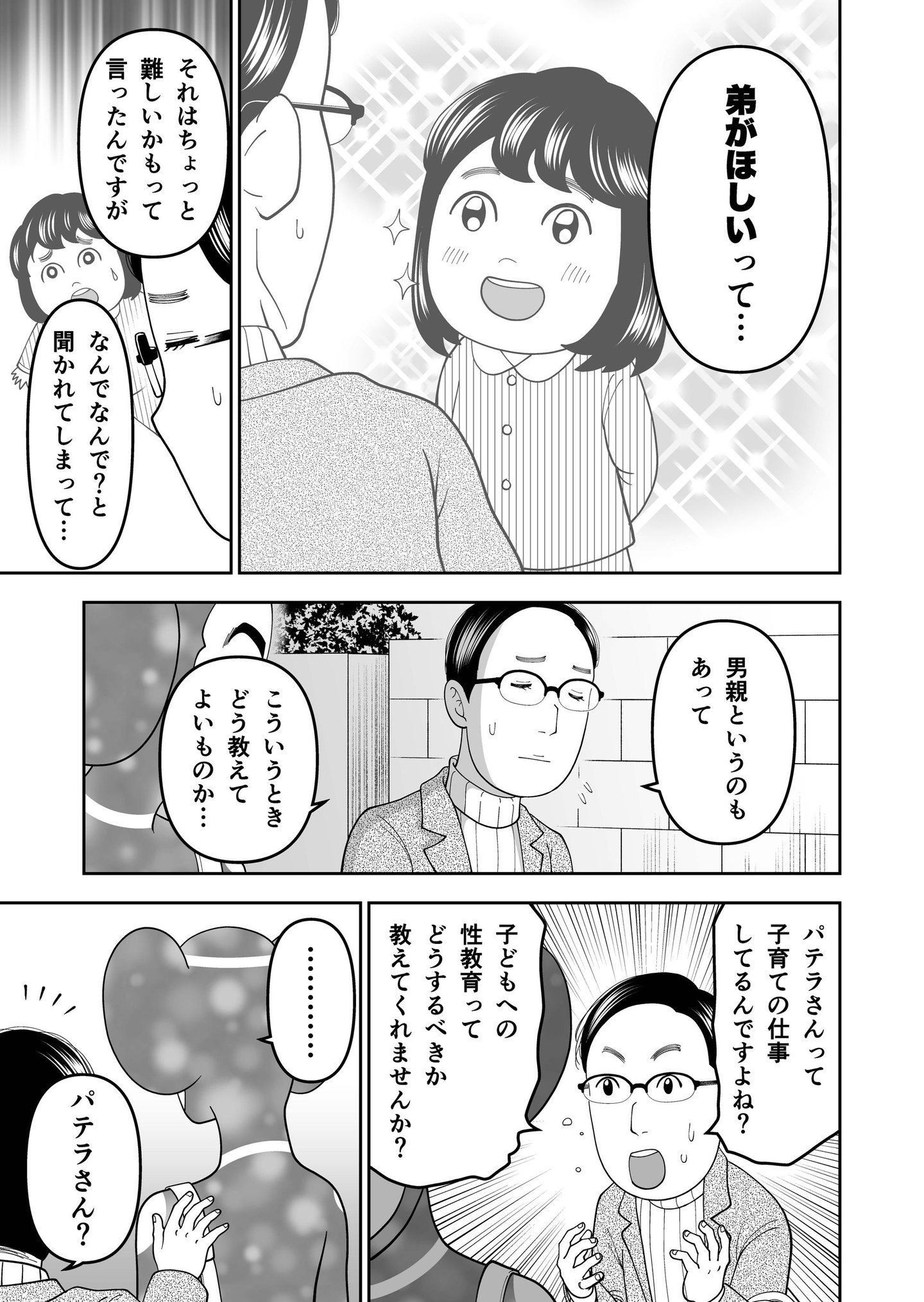 第46話「どうする?性教育(前編)」 駒崎 弘樹 CEO on 2025/03/04 僕が原案を担当させてもらっている、子育て支援が学べるギャグマンガ 「子連れ宇宙人パテラさん」待望の最新話公開です!誕生日プレゼントは「弟がほしい」。妻の海外赴任中に娘からのお願いに悩むパパ。どうする!?パテラさん!!これまでの全連載はこちらでお楽しみいただけます! 子連れ宇宙人パテラさん 月刊誌『第三文明』で好評連載中の漫画「子連れ宇宙人パテラさん」。認定NPO法人フローレンス会長・駒崎弘樹さんが原案をつとめています。 本日8/1から、第51話「発達障害ってなんだ(中編)」が公開になりました。 息子のトトラが発達障害かもしれないと保育園の園長から言われたパテラさん。発達障害のことをよく知らないパテラさんは、育児丸さんにある場所に連れて行かれて......。 第46話「どうする?性教育(前編)」 駒崎 弘樹 マンガ 子連れ宇宙人パテラさん こどもの性教育 シェア