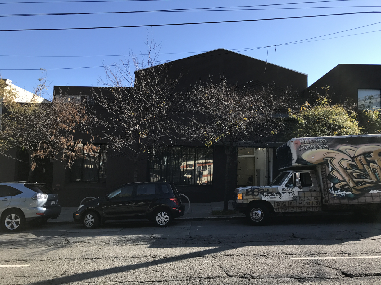 外観はこんな感じ。障害物があって遠くからしか撮れず、切れ目がよくわかりませんが、映っている範囲がひとつの建物で、その一棟まるっとうちのオフィスです。
