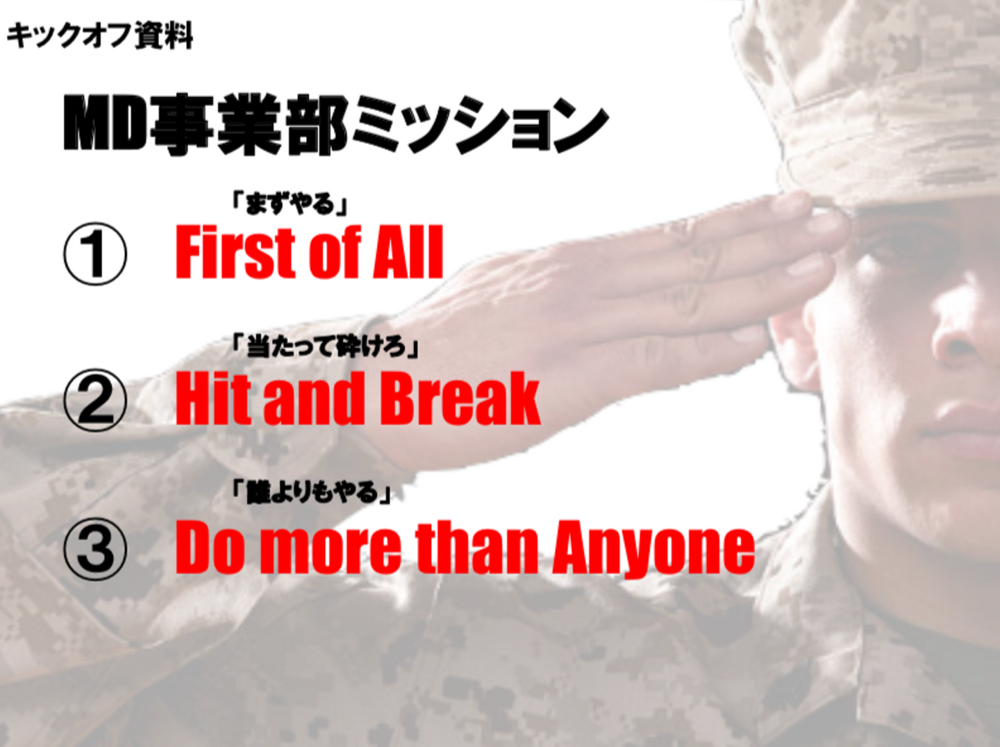 ※上記はキックオフ時に使用した、大芦が統括する事業部の事業部ミッション
