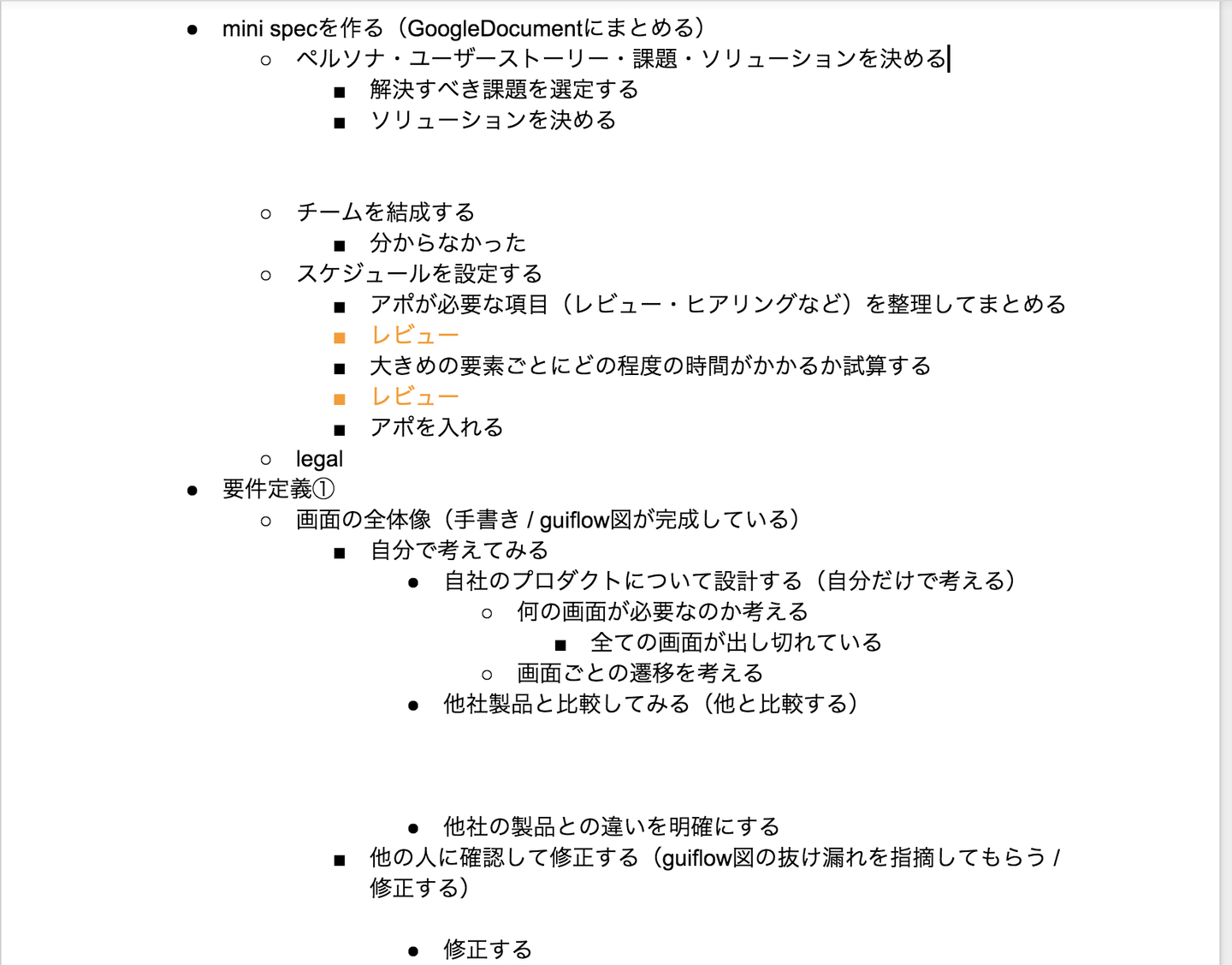 その際に、大まかにやるべきことを列挙して、それを細かく分解していくようにしましょう。