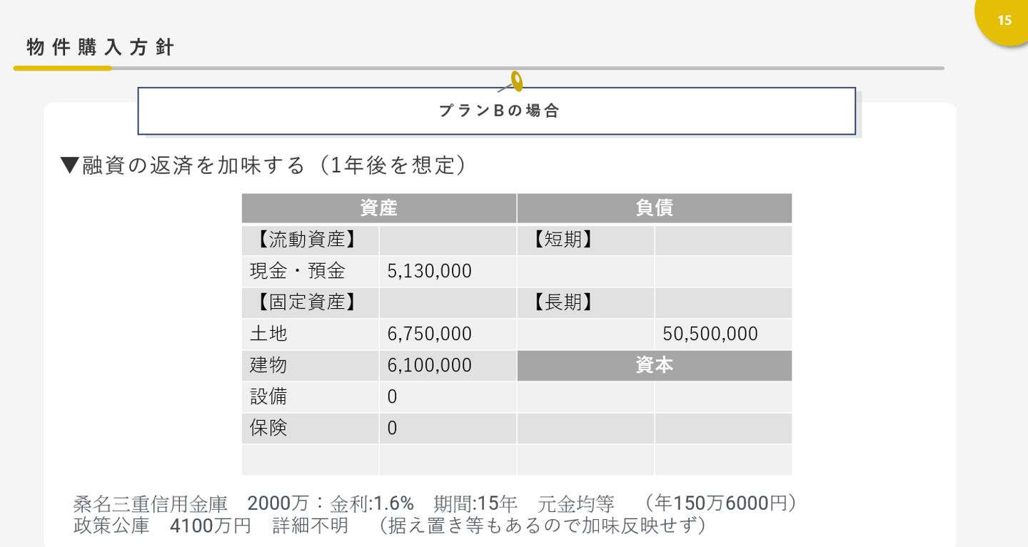 例えば商品Aの広告を打ったら、木造のアパートを購入したら、貸借対照表にどのような影響を与える。それを基に運転資金や設備投資はどうする、融資をどうする。そして今期の終わり、3期後の終わりには現金や土地建物といった資産、借入負債、また損益計算書の売上や経費がどうなるんだろう・・・?と想定するやり方です。