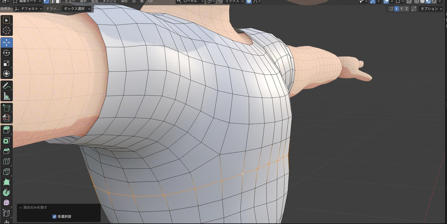 アドオンを使って選択した頂点を隠す(選択できなくする)というものなんですが、地味~に便利だったので紹介します!