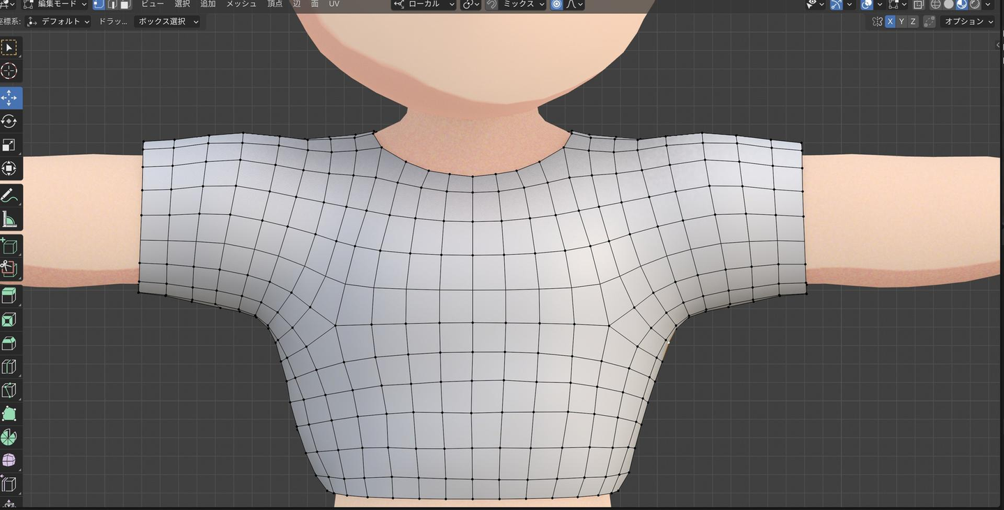 そうすると見えにくいですがメッシュから頂点が表示されなくなります。