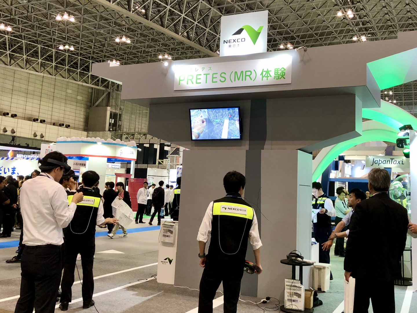 NEXCO東日本のブースでは、xRのひとつであるMR(=Mixed Reality / 複合現実)を利用したデモンストレーションが行われていましたね。