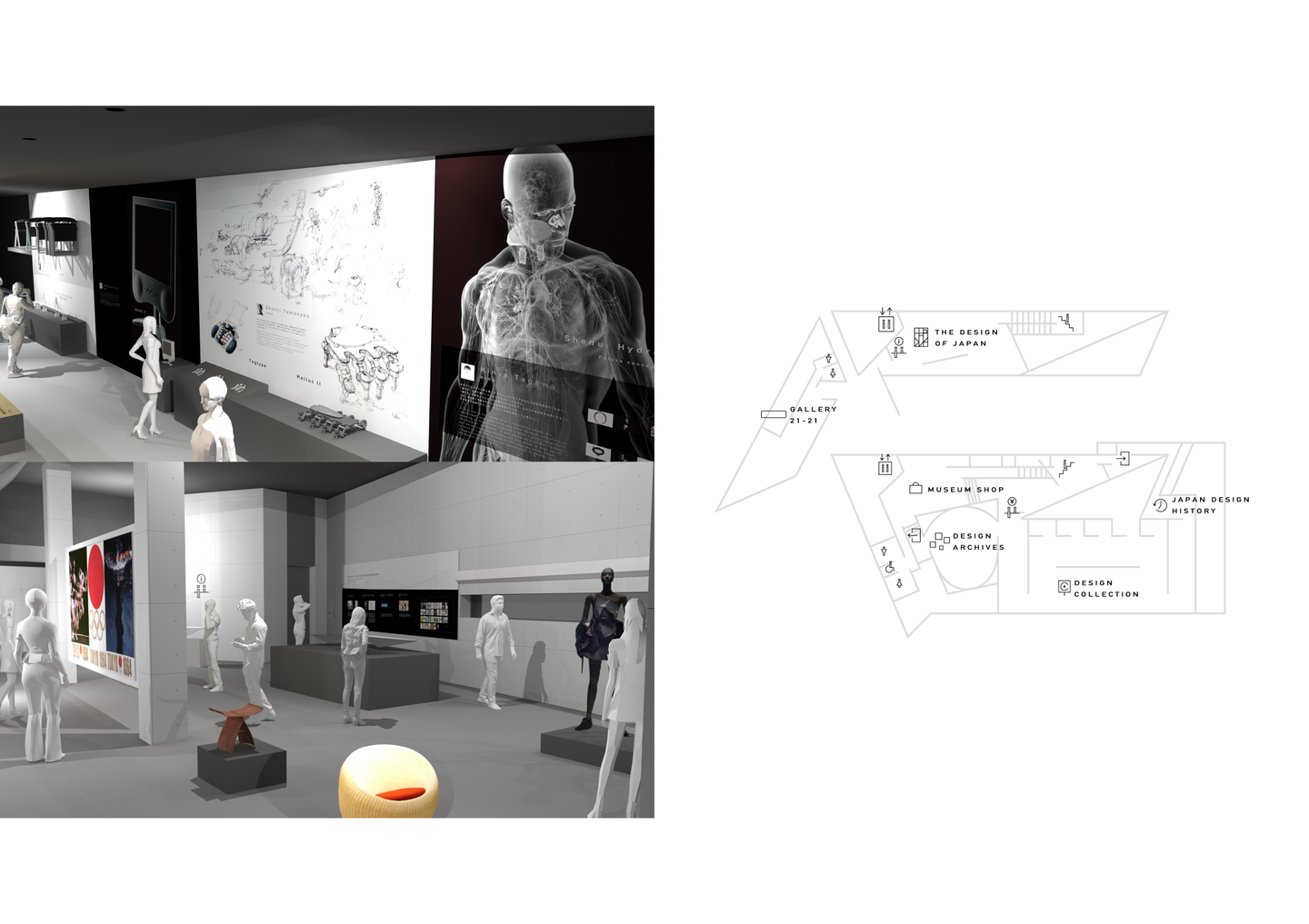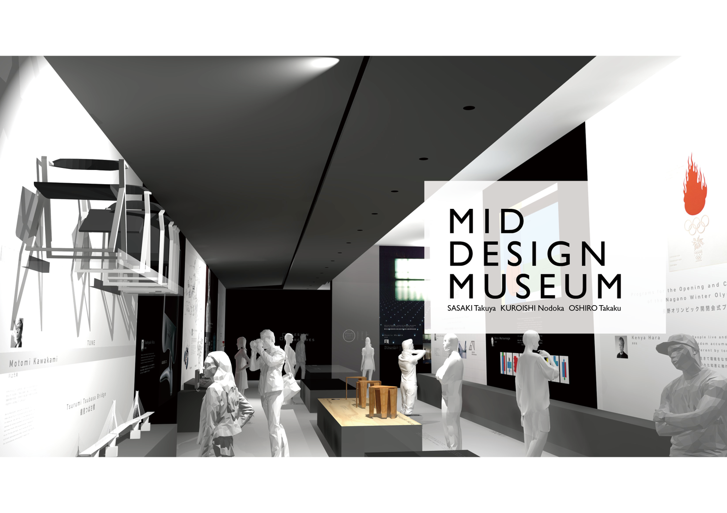 赤十字のロゴを用いたパターンを使い、5チームの作品を展示