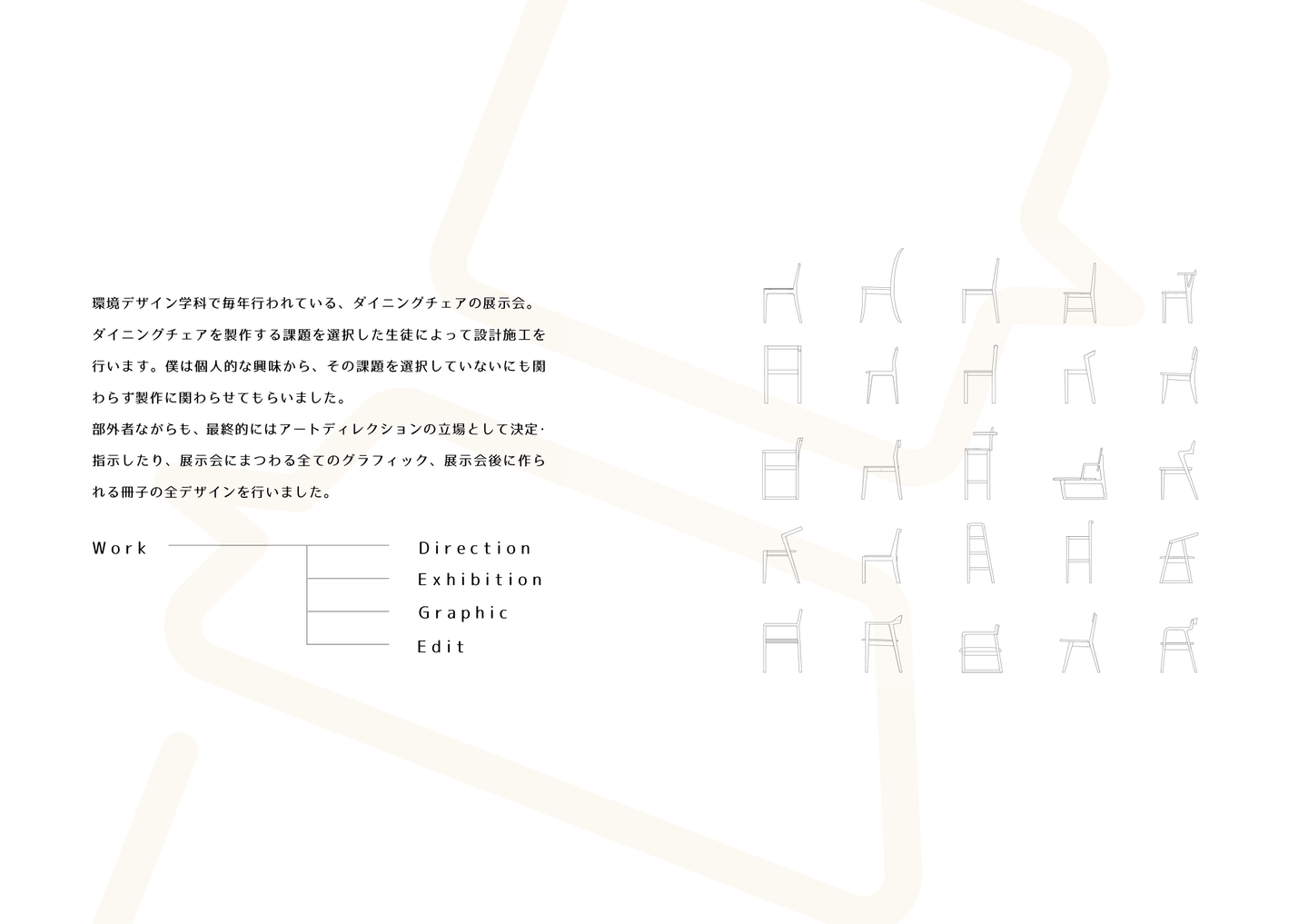 25脚のダイニングチェアの展示と、そのブックレットデザイン