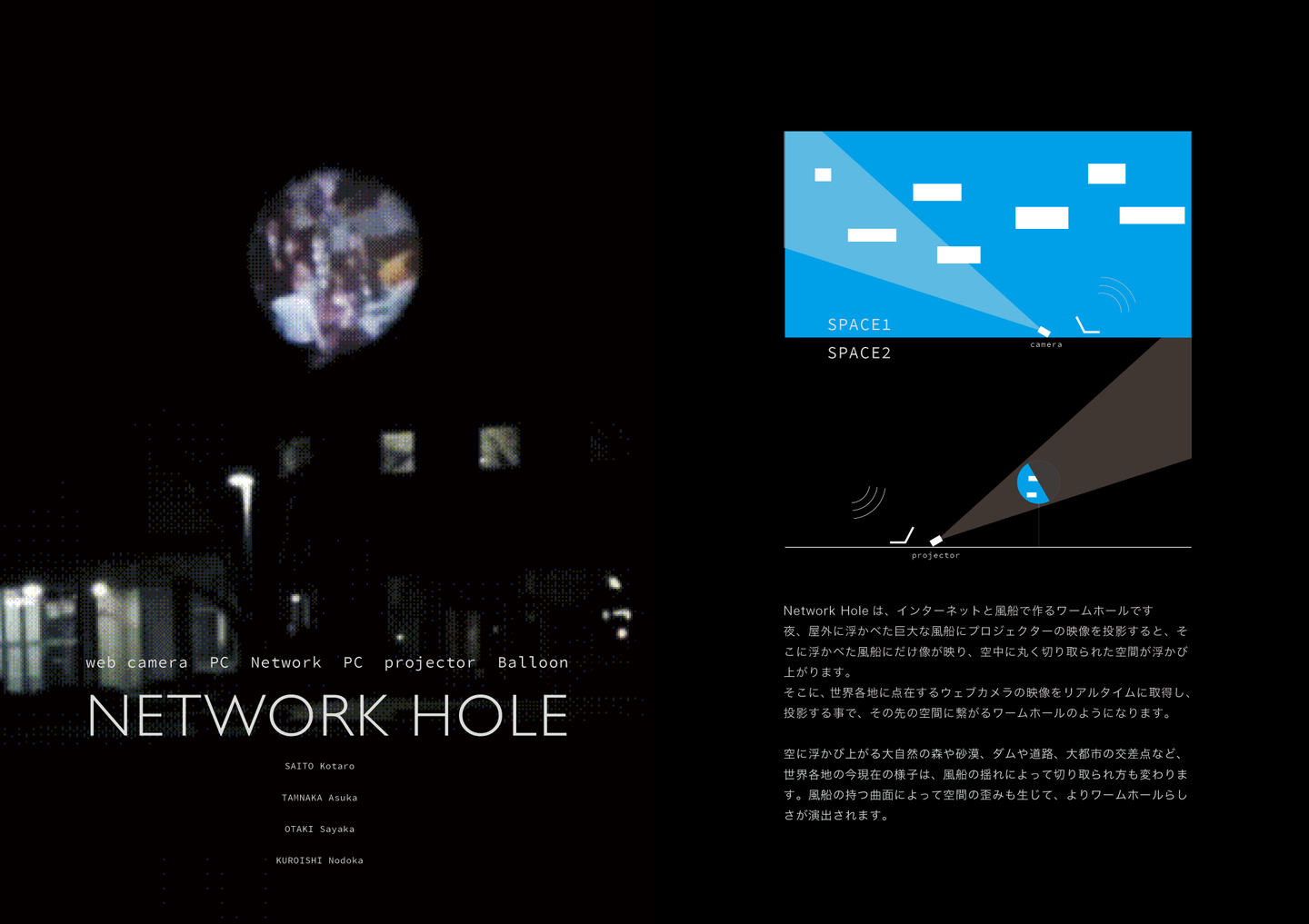 夜、巨大な風船にプロジェクションする事で空にワームホールを作る