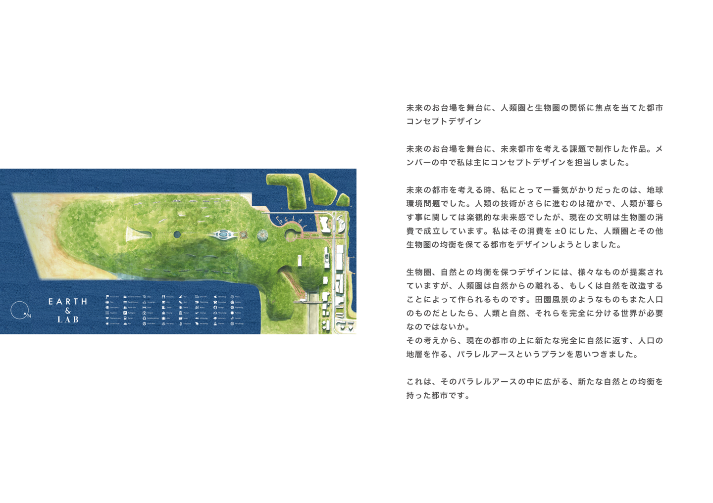未来のお台場を舞台に、人類圏と生物圏の関係に焦点を当てた都市コンセプトデザイン
