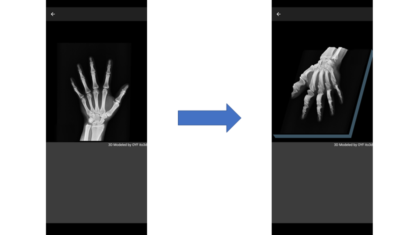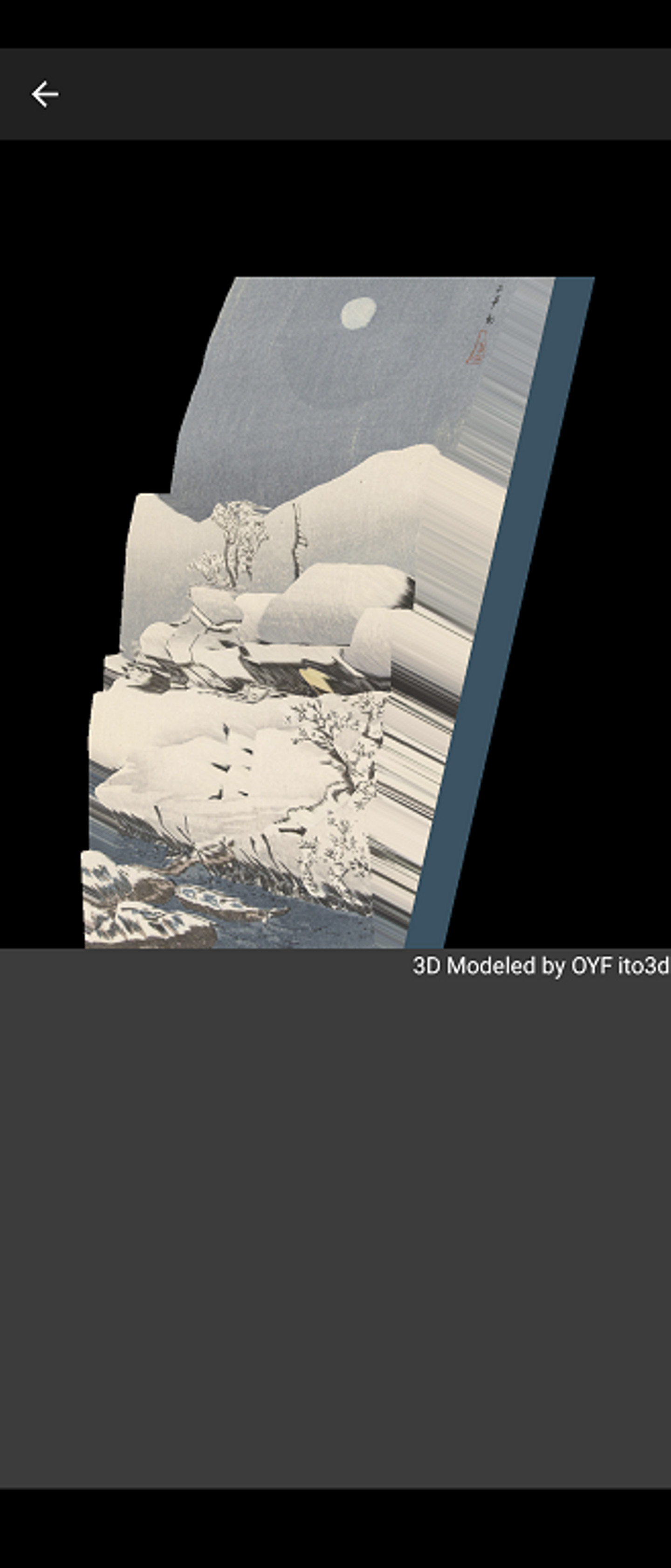 選択された1枚の画像を自動で瞬時に3Dモデルへ変換して表示するスマホアプリを開発しました。このアプリでは画像に描かれている物や写真に映っている物が浮き出して半立体化し、このアプリのビューア上で指で回しながら角度を変えて見ることができるようになります。