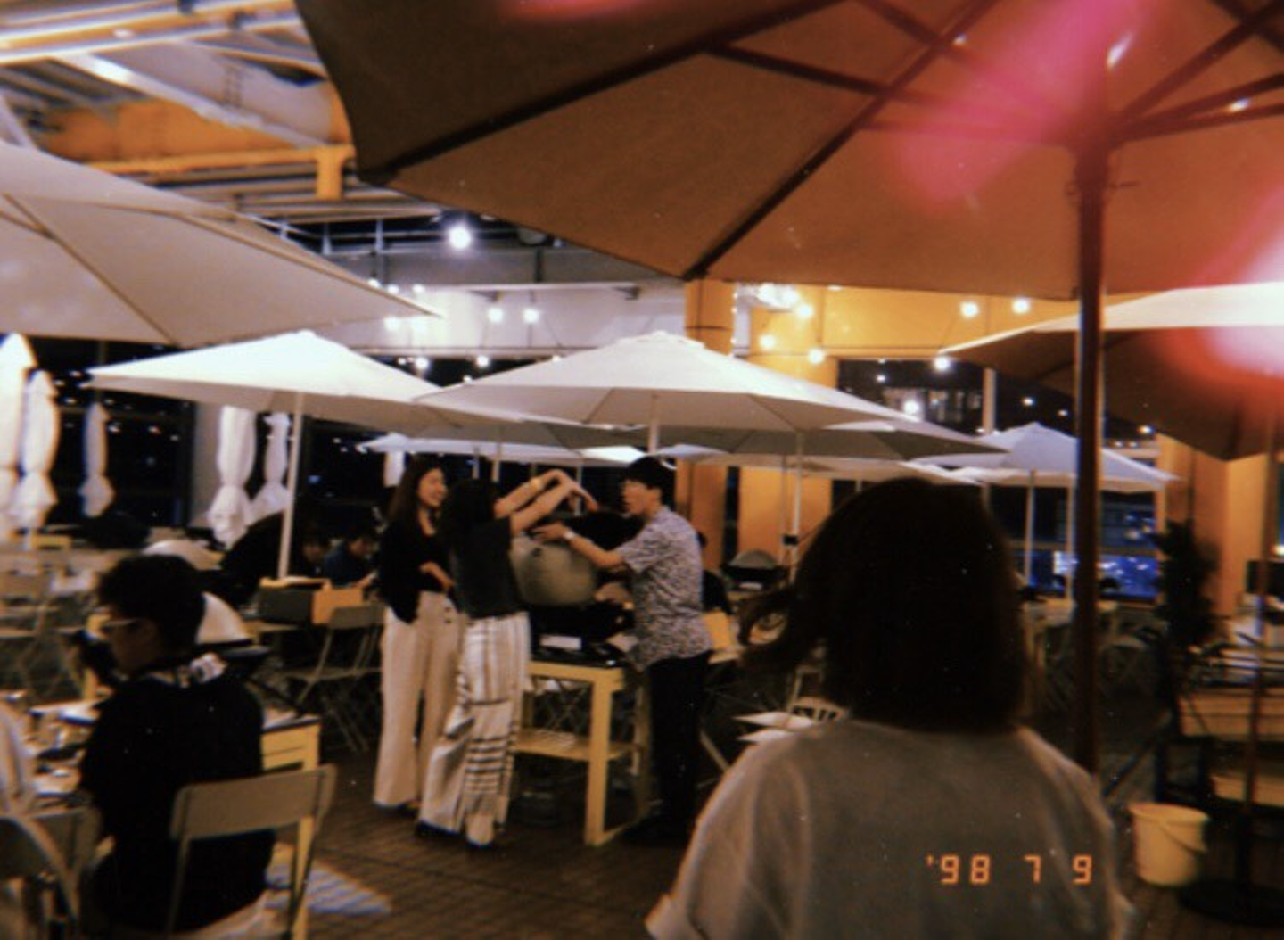 (渋谷のタワレコの屋上で送迎会を行ってもらいました。)
