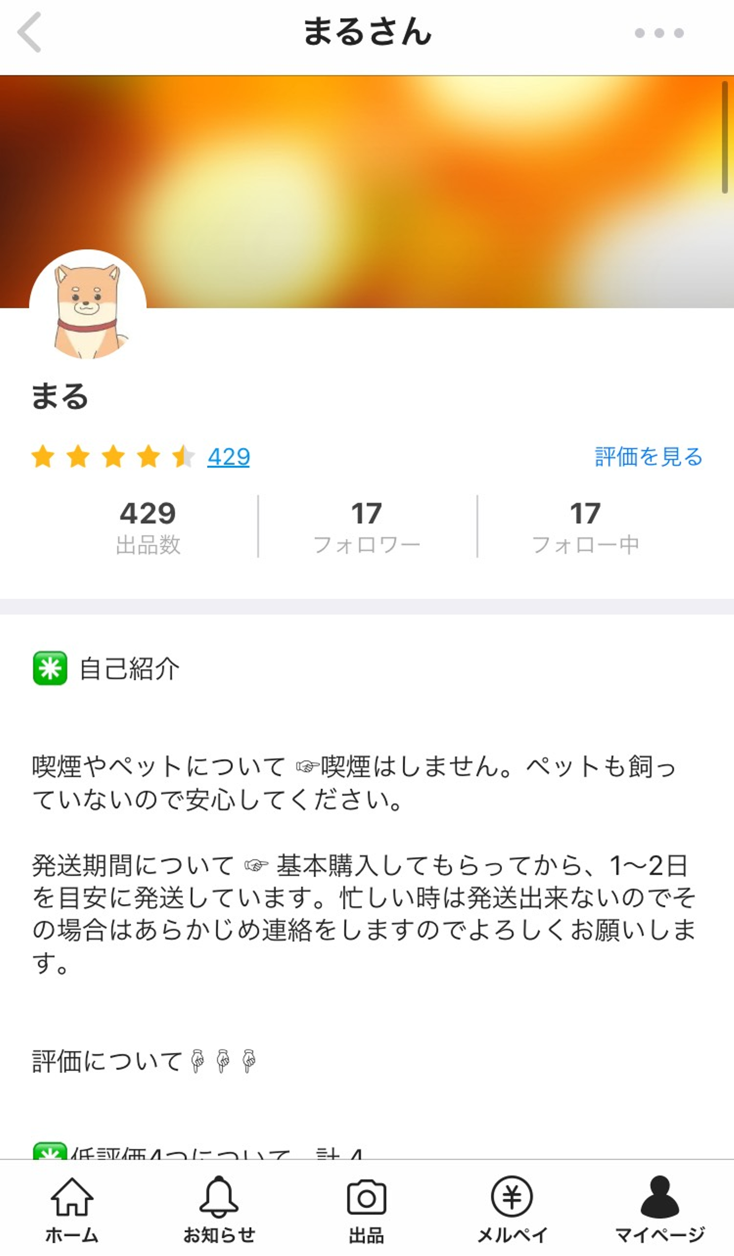 メルカリのアカウント↓(今でもたまに使います。参考書などを売るときに)